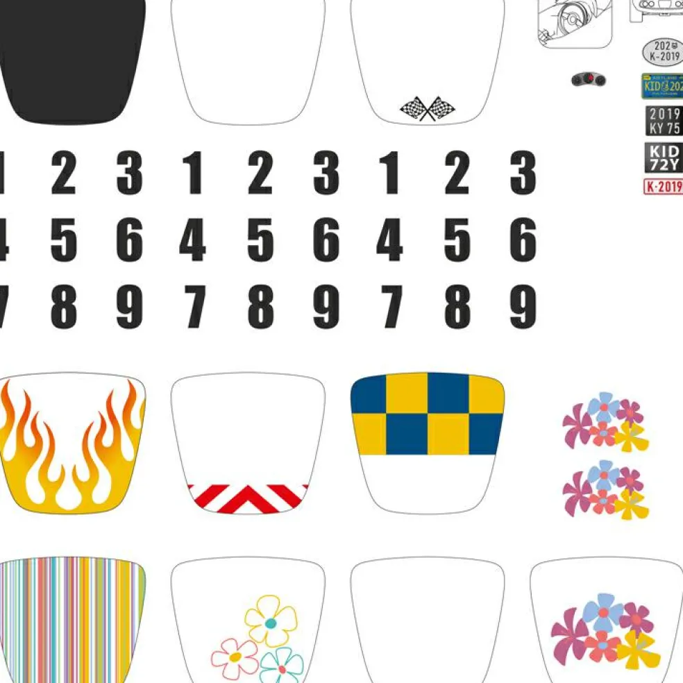 – 1 feuille d’autocollants pour personnaliser la voiture.