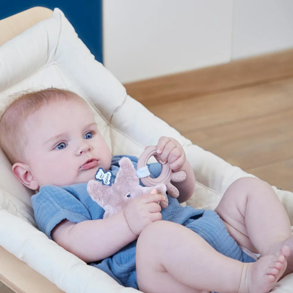 – Picots et rainures sur l’anneau pour masser les gencives de bébé.