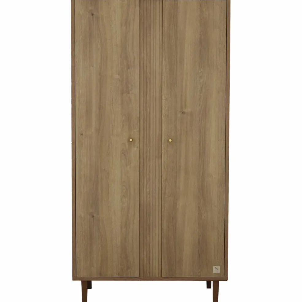 Avec son design raffiné, son coloris chêne moka et ses finitions striées, cette armoire transforme l’espace en un cocon chaleureux et résolument moderne. Les poignées dorées mates et les pieds en hêtre foncé viennent sublimer l’ensemble pour un rendu aussi chic que fonctionnel.