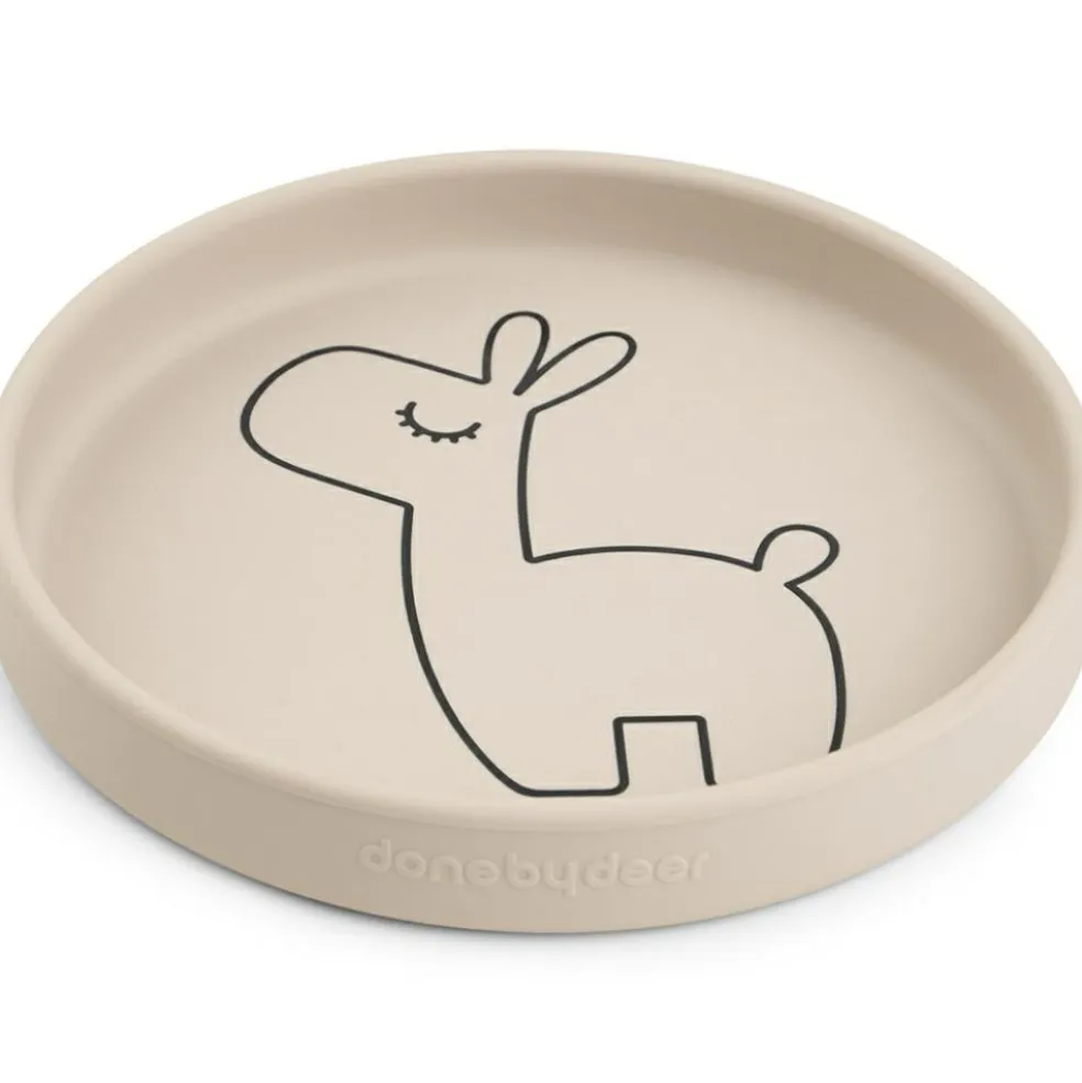 – Assiette en silicone décorée de Lalee dans un doux coloris sable.