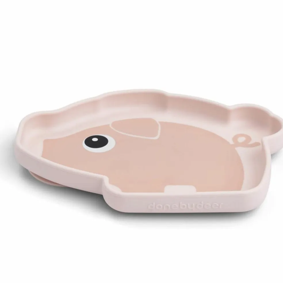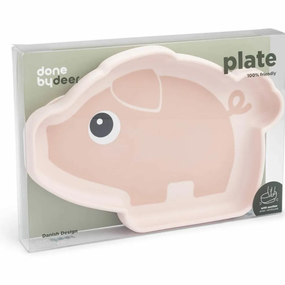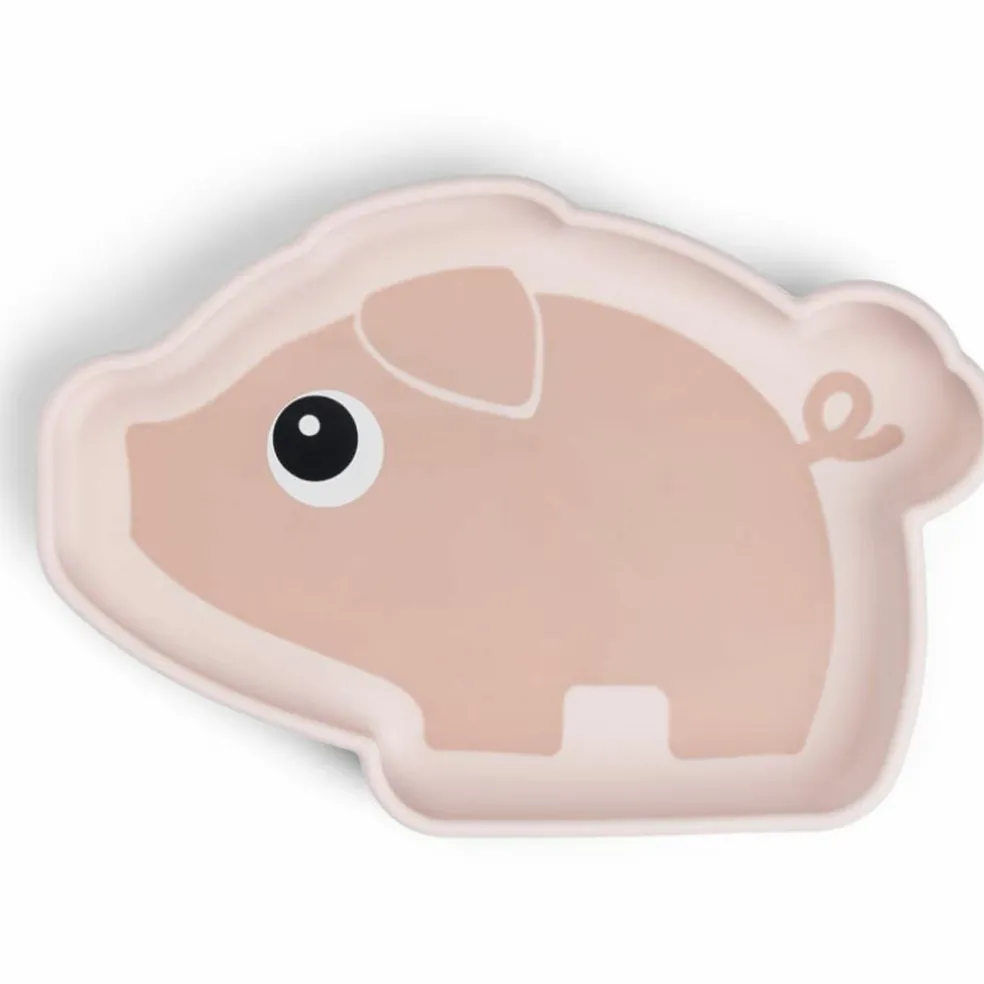 – Assiette de couleur rose aux formes et motifs rigolos de Pigee.