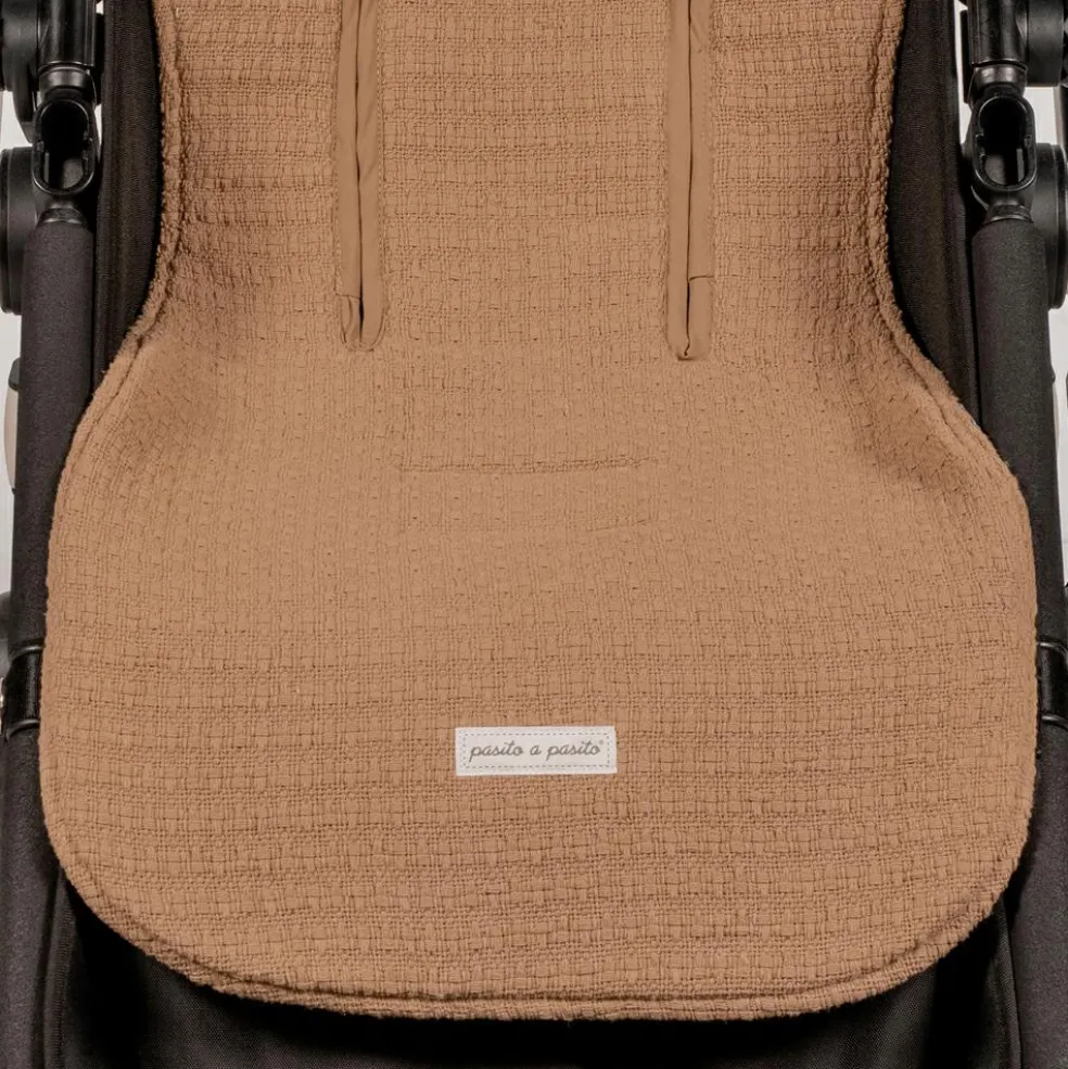 – L’assisse poussette Icon Caramel de Pasito a pasito en tissu gaze 100% coton est la housse idéale qui s’adapte à la plupart des poussettes et offre un plus grand confort à votre enfant lors de ses promenades par temps chaud.
