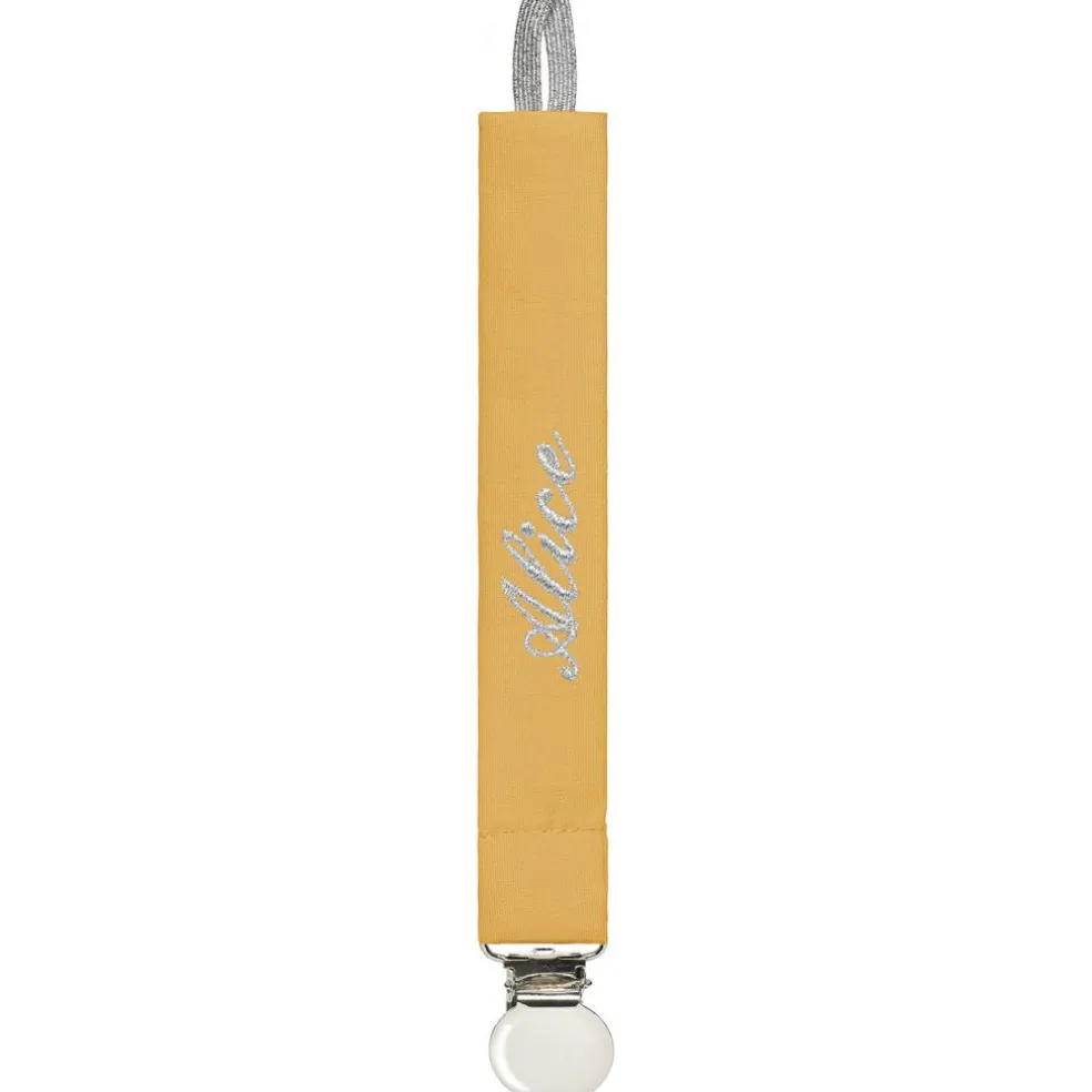 L’attache sucette moutarde de la marque ANVIE est un cadeau unique et original qui permettra à bébé de toujours avoir à portée de main sa sucette préférée.