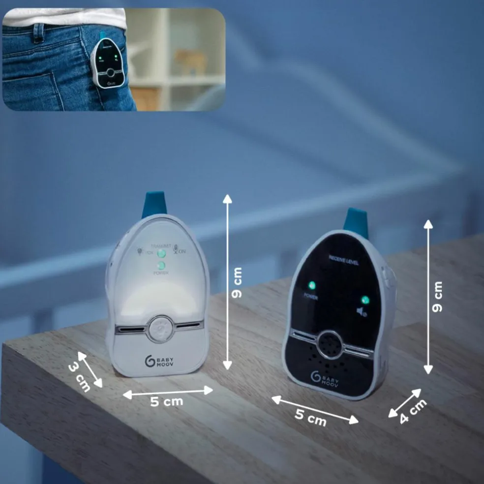 Le babyphone audio Easy Care de la marque Babymoov s’installe facilement dans la chambre de votre tout petit. Vous placez l’émetteur à proximité du lit et vous gardez le récepteur avec vous. Facilement transportable, il ne prend pas de place dans votre sac à langer grâce à sa petite taille. Pour un maximum de liberté, les deux unités fonctionnent sur piles ou à l’aide d’un câble micro-USB fourni. Ce babyphone audio allie un son clair, sans interférence a de nombreuses fonctions : mode VOX, veilleuse… Il dispose de la Digital Green Technology. Cette innovation réduit le niveau d’émission d’ondes tout en garantissant les plus longues portées.