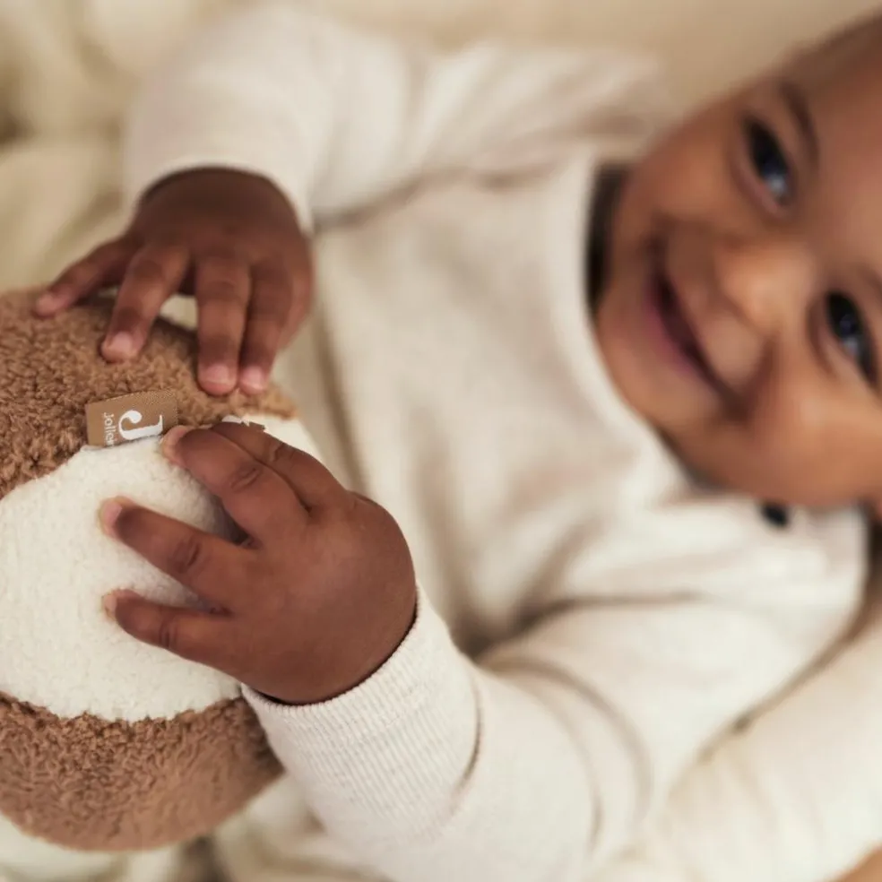 Éveillez les sens de votre bébé avec la Balle d’éveil Ivory-Biscuit de Jollein, un jouet doux et sensoriel parfait dès les premiers mois.
