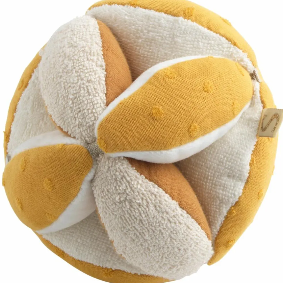 Un monde de découvertes dans les petites mains avec la Balle sensorielle en coton bio de Sauthon !