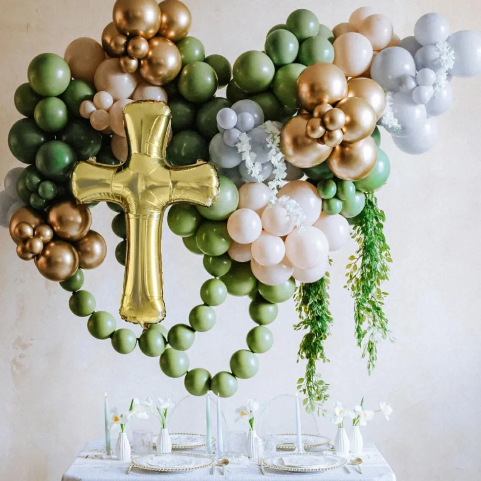 – Ballon en aluminium Croix de couleur or.