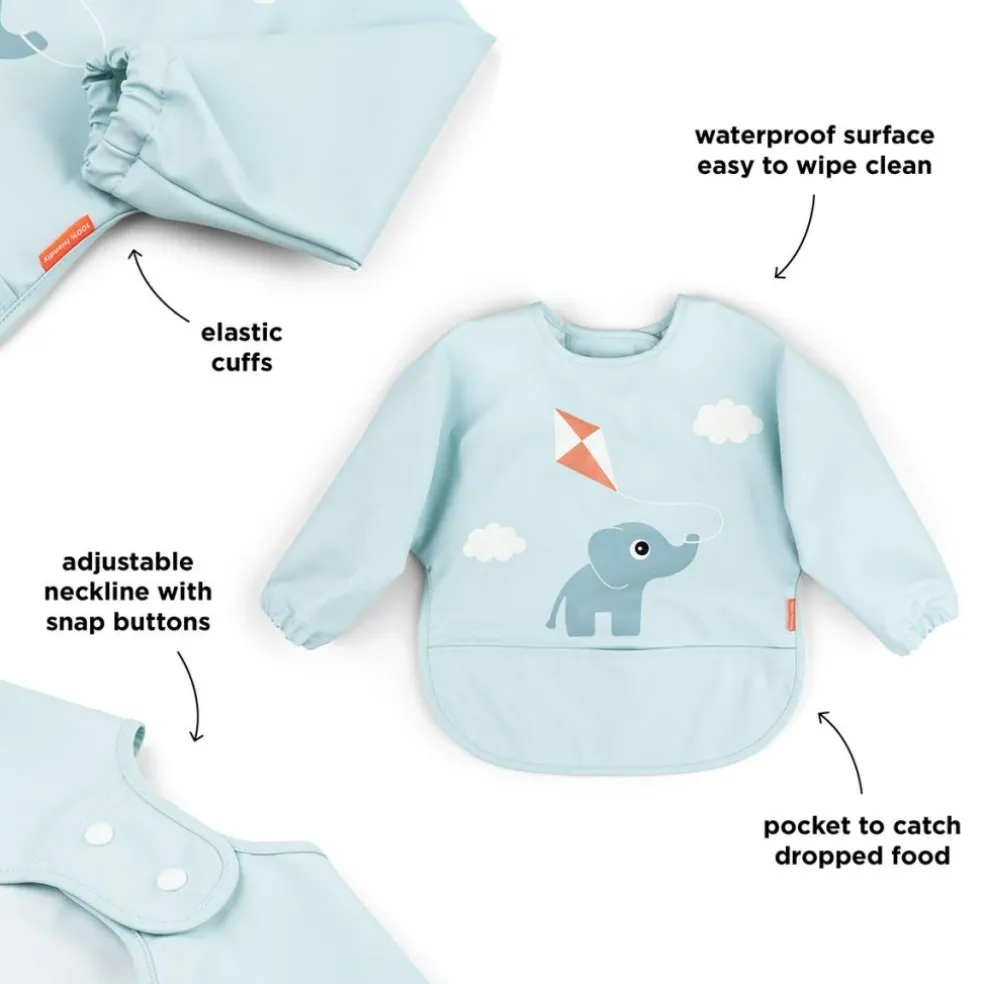 – Adorable bavoir bleu décoré d’Elphee qui joue au cerf-volant.