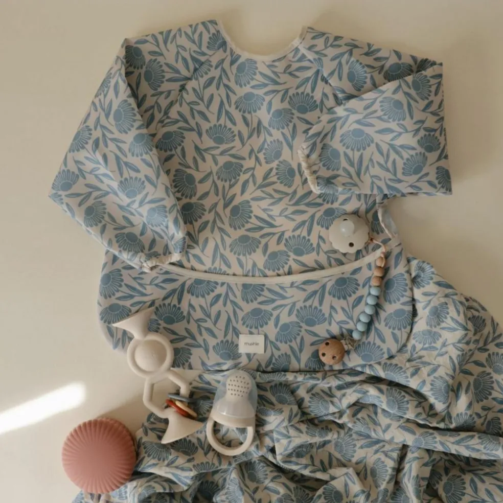 Protégez les vêtements de votre bébé avec style grâce au Bavoir à manches longues Mushie, pensé pour les petites aventures du quotidien !