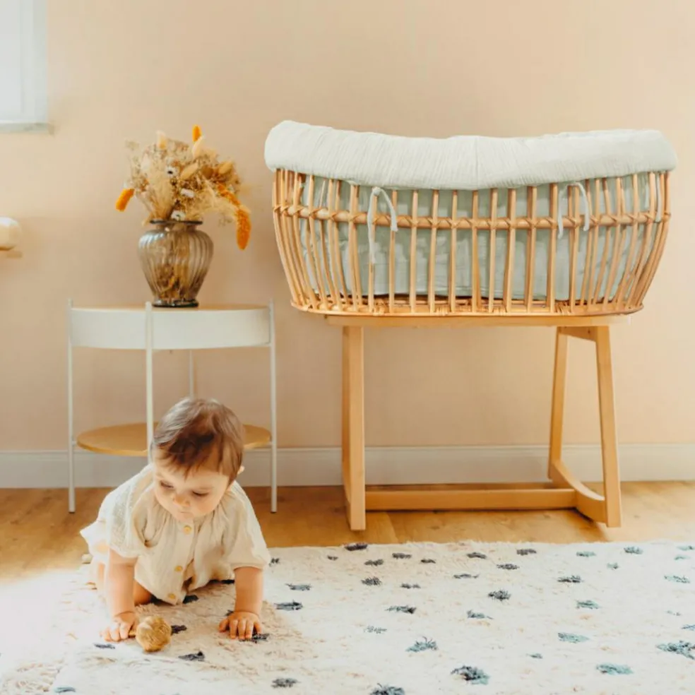 – Panier en rotin avec habillage en textile 100% coton bio.