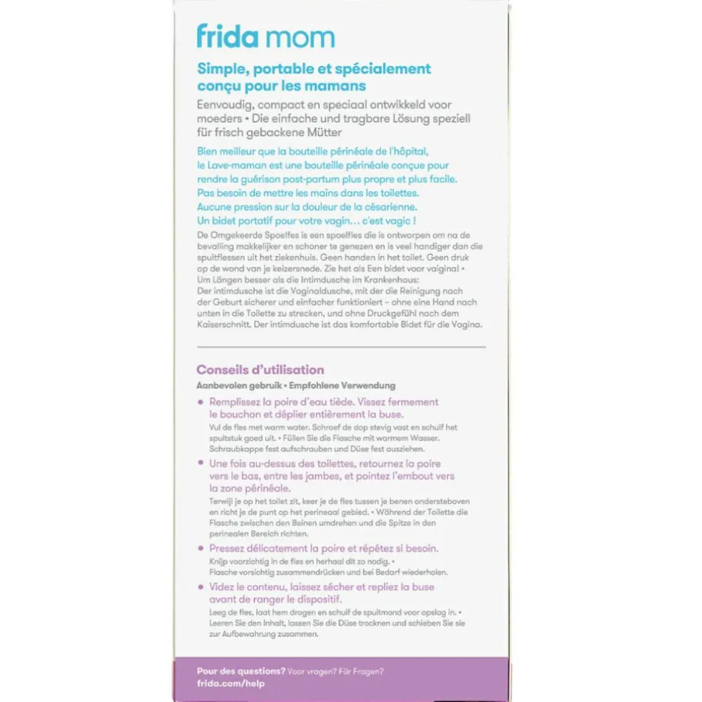 – 1 bouteille de rinçage post-partum + 1 pochette de rangement inlus.
