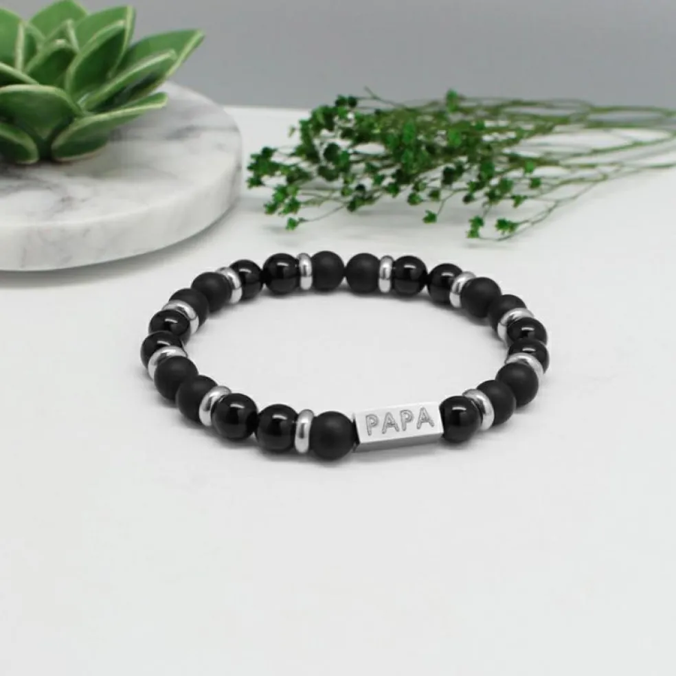 – Perles en agate noire brillantes et mates.