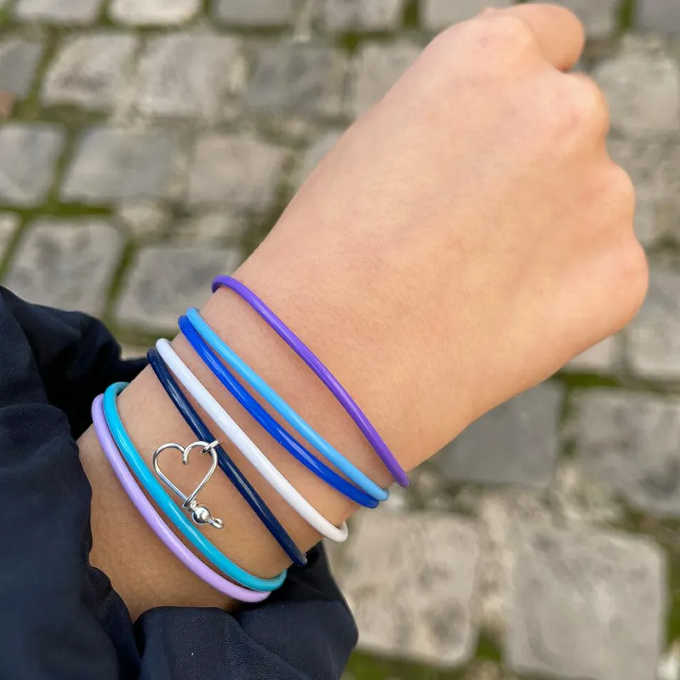 – Attention, ces bracelets s’enfilent délicatement, ils peuvent s’étirer un peu afin de les enfiler mais ne sont en aucun cas élastiques.