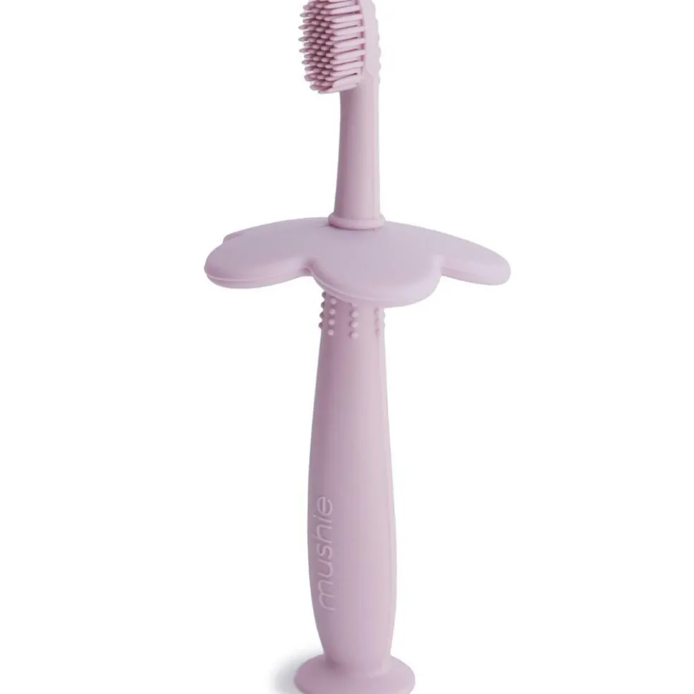 – Garde amovible en forme de fleur évitant d’enfoncer la brosse trop loin dans la bouche.
