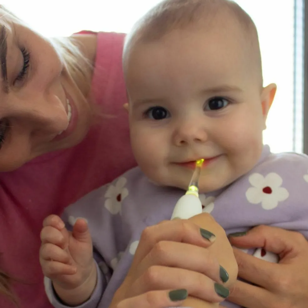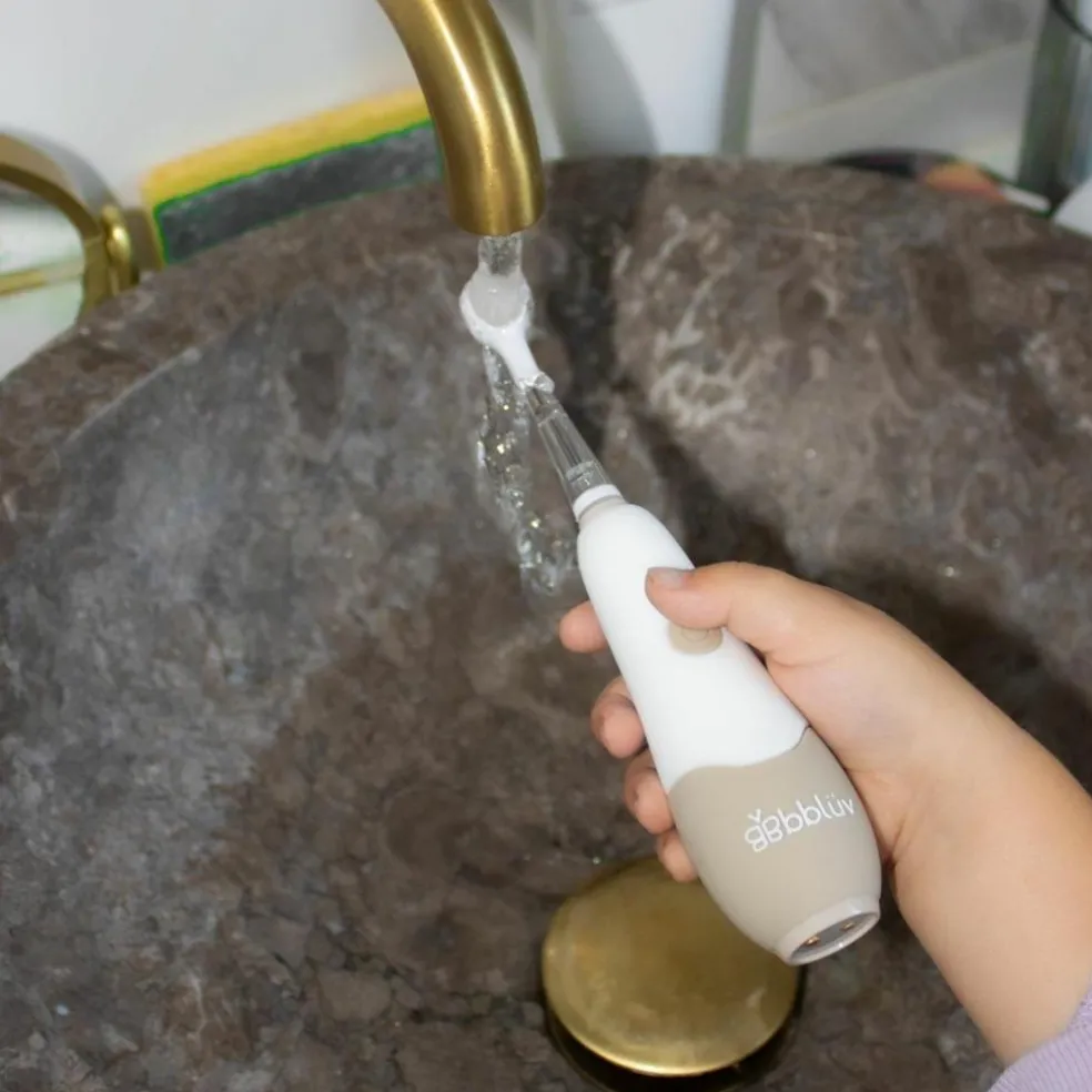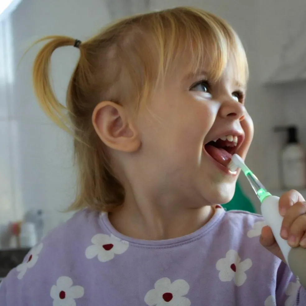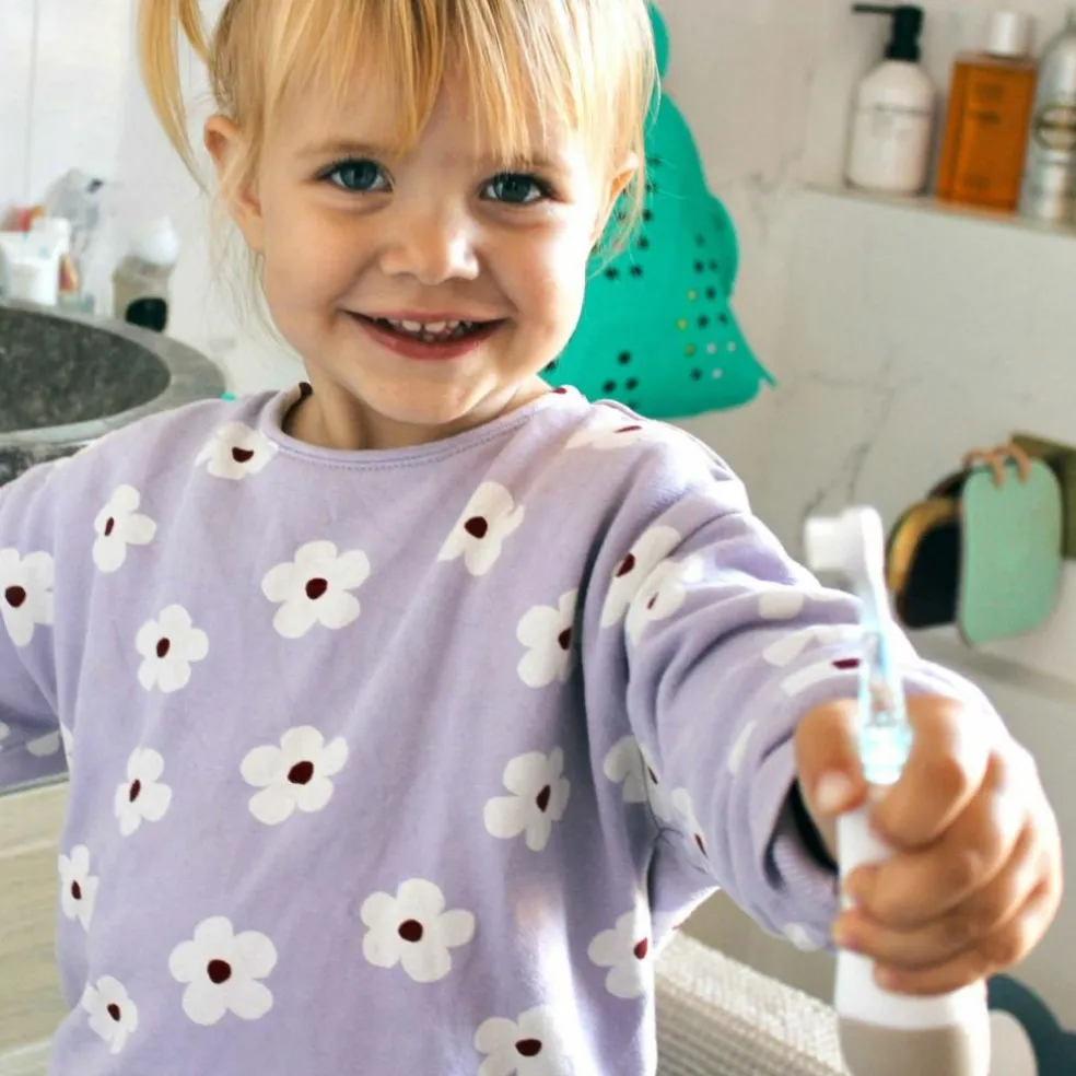 – Vibrations soniques qui favorisent l’apprentissage des gestes d’hygiène tout en amusant les plus jeunes.