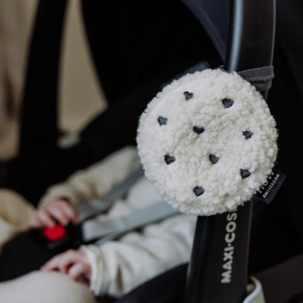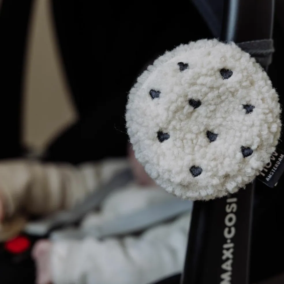 Compact et pratique, ce petit boîtier se glisse dans une douce housse en tissu beige à l’aspect lainé, délicatement brodée de motifs tendres. Que vous choisissiez Lucy avec ses cerises, Ted avec ses coccinelles ou Billy avec ses petits cœurs, il devient vite l’allié incontournable des parents en déplacement.