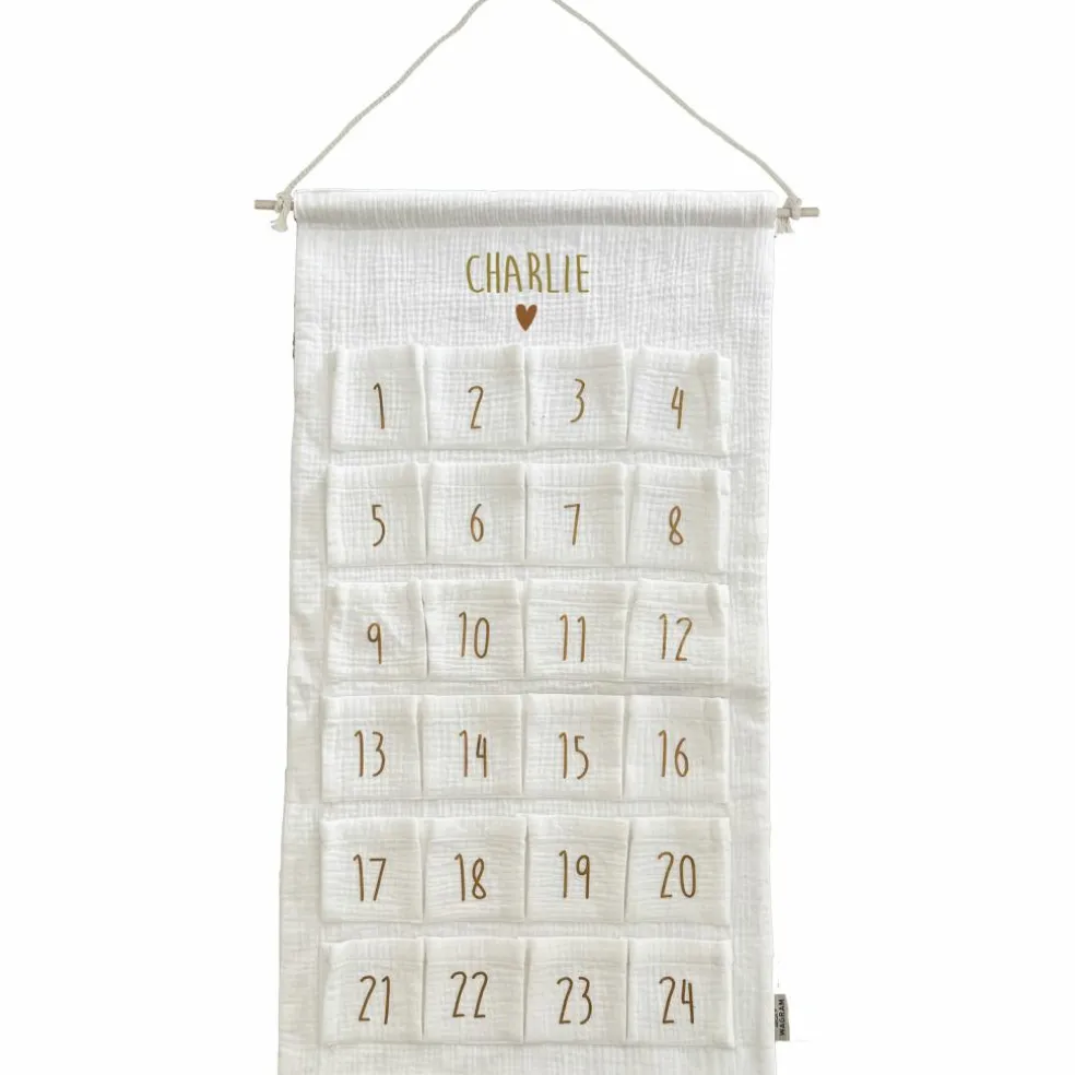 Faites patienter vos enfants tout en douceur avec le Calendrier de l’avent en gaze de coton signé Atelier Wagram, une création personnalisable qui transforme l’attente de Noël en moments magiques et ludiques.