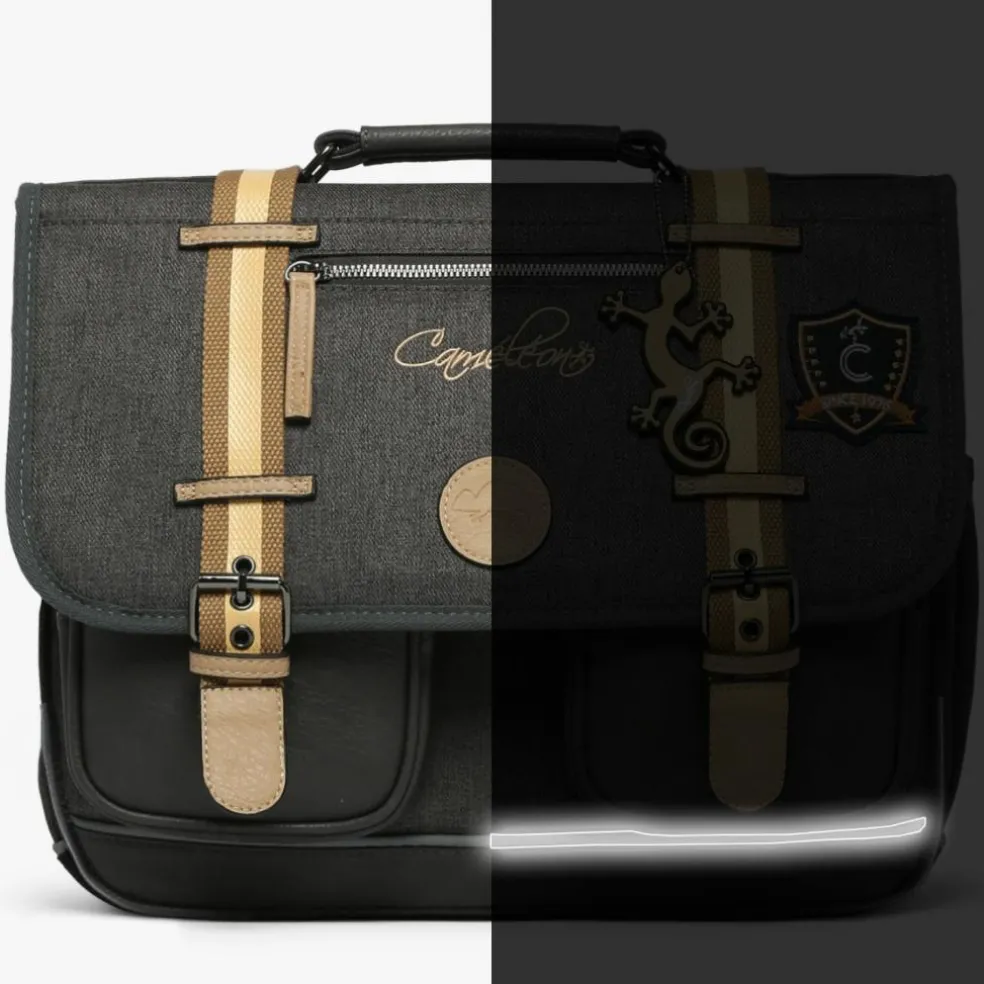 – Se ferme à l’aide d’un rabat et de deux fermoirs.