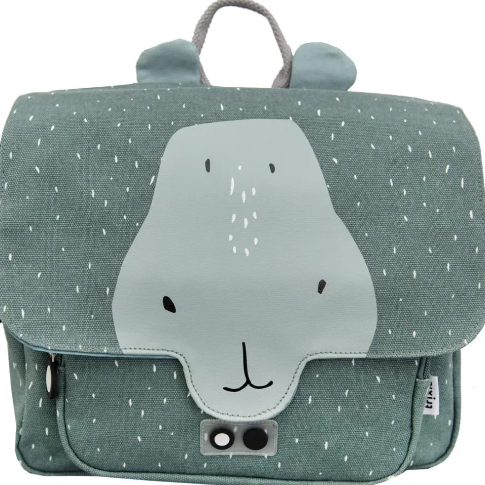 – Fermeture zippée + rabat en tissu.