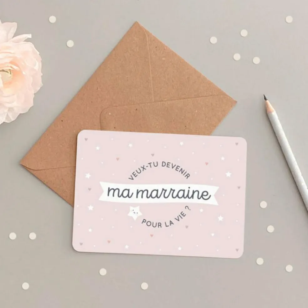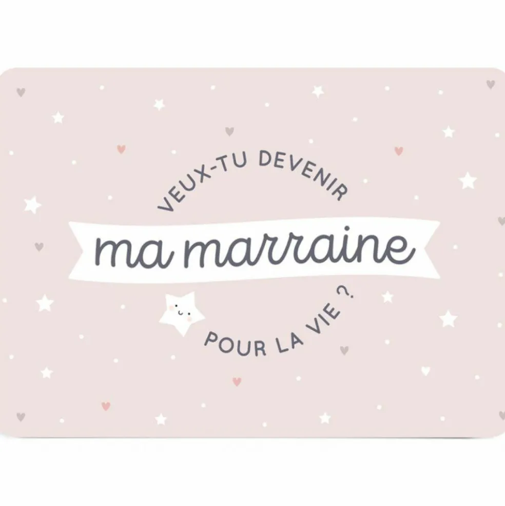 La carte annonce Marraine illustrée par Zü permettra de demander de façon originale à la personne concernée si elle veut bien devenir la marraine de votre bébé. Elle peut également être utilisée en tant qu’accessoire de décoration pour un décor plein de douceur.