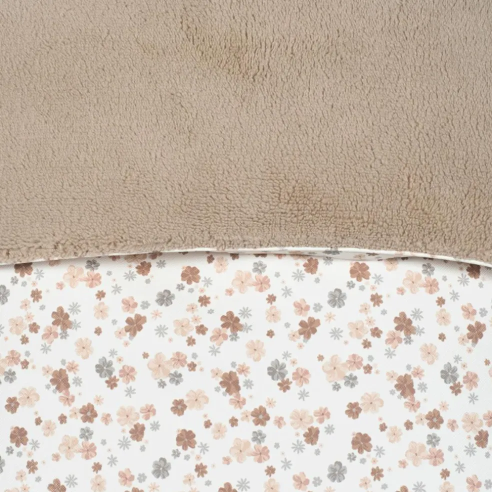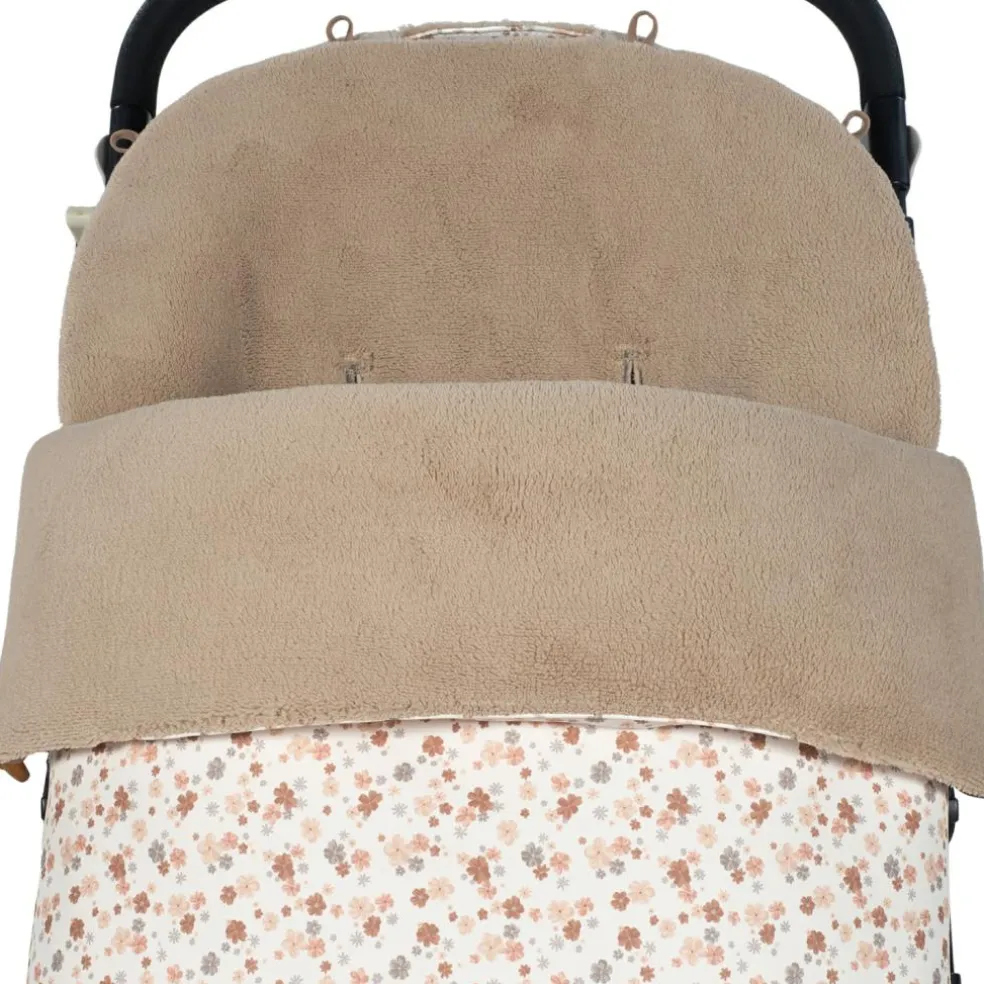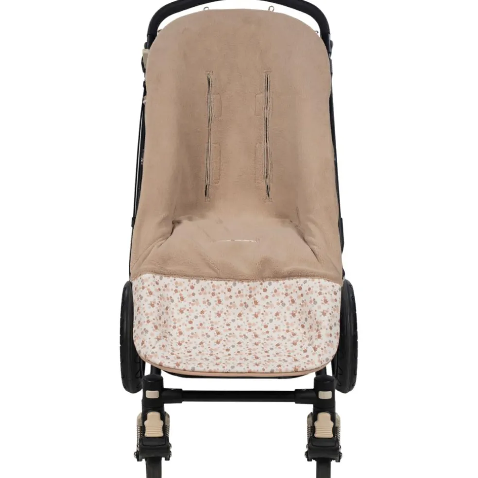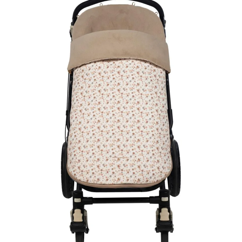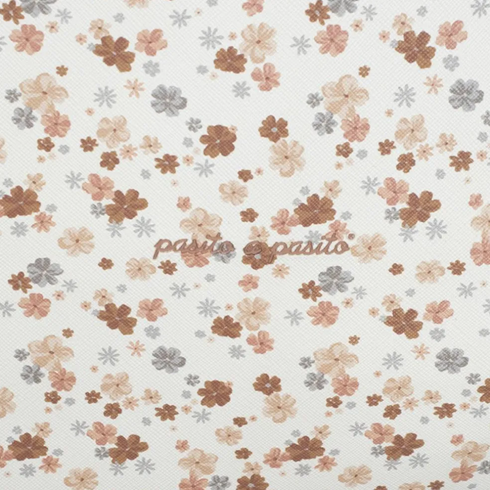 – En faux cuir imprimé floral, idéale pour couvrir la poussette équipée d’un sac.