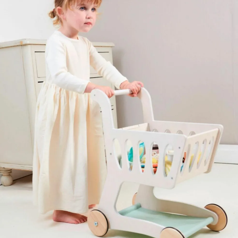 – Faire le tour du magasin avec le chariot de courses en bois le plus élégant.