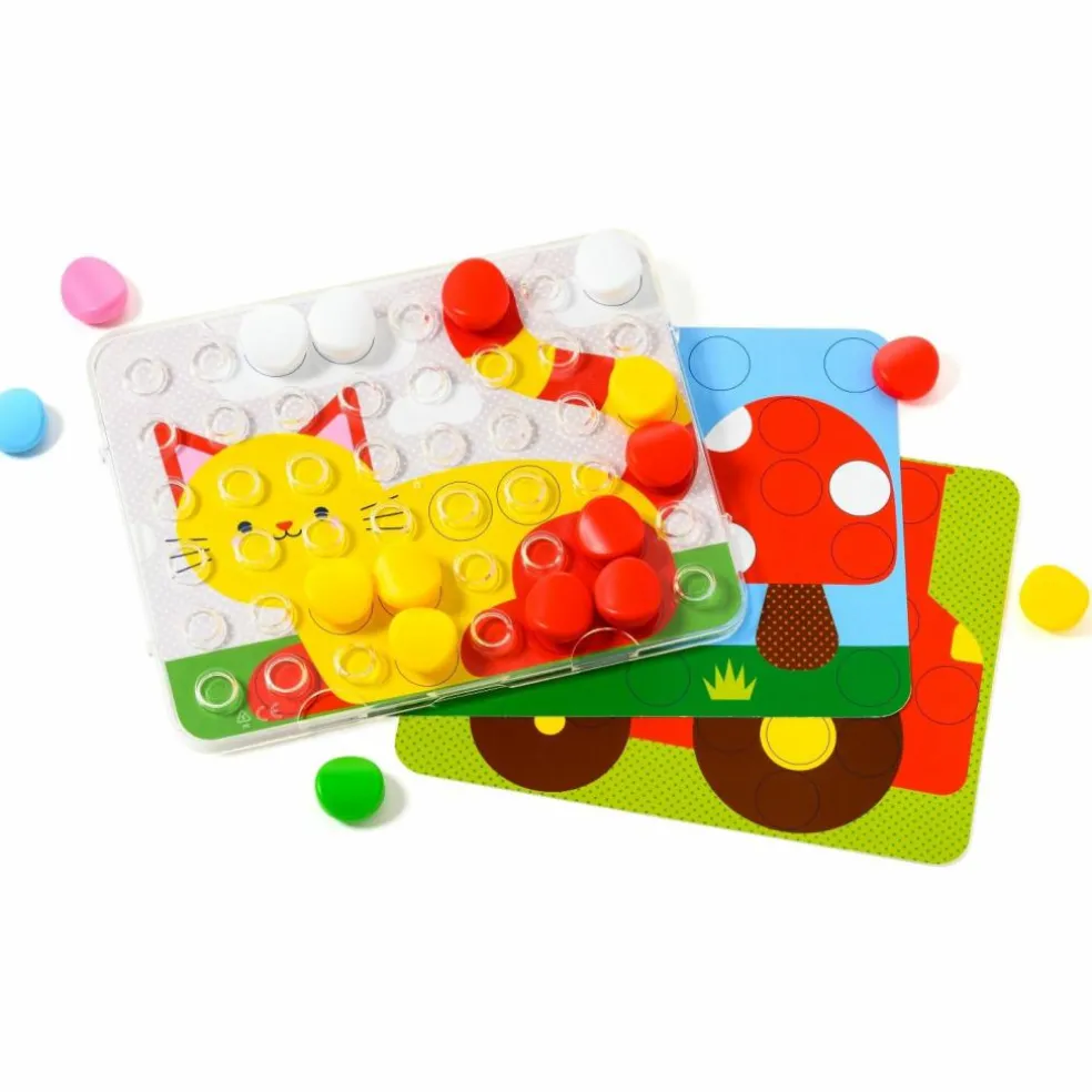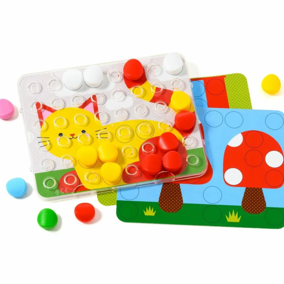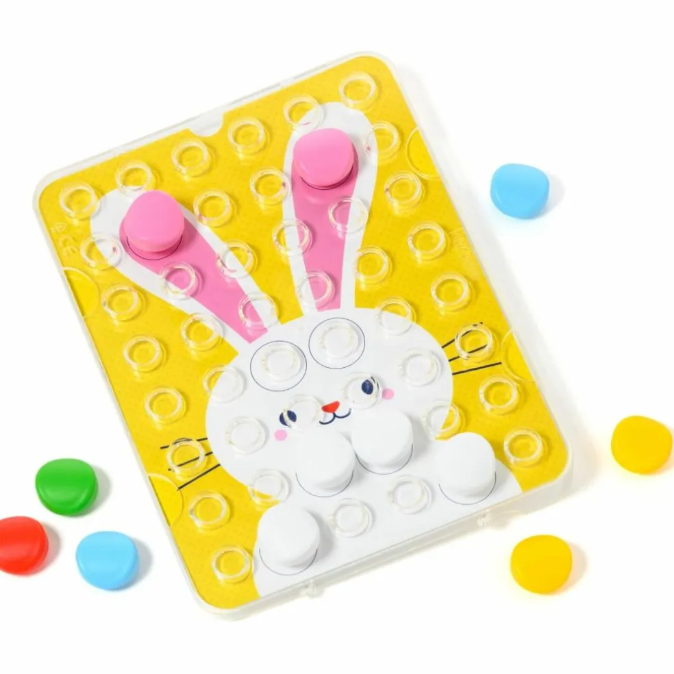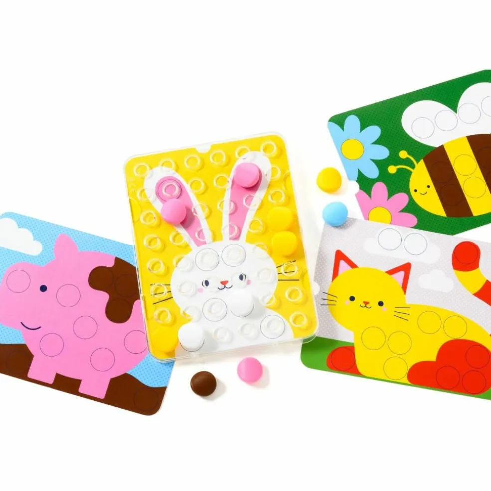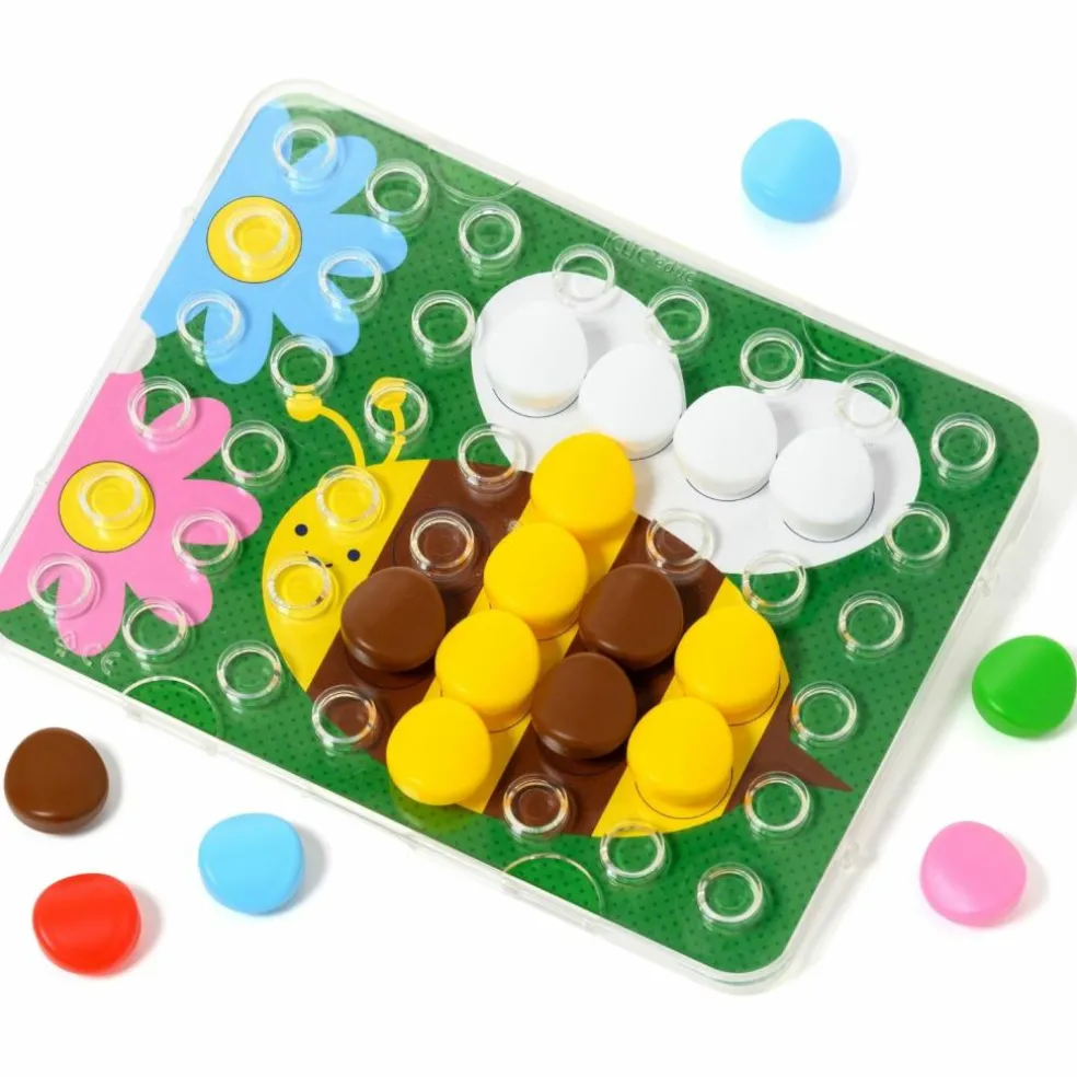 Apprendre les couleurs autour du thème fédérateur de la ferme ? C’est par ici avec Clic Educ ! Ce jeu éducatif invite votre enfant à créer ses premiers dessins en mosaïques. Après avoir choisi sa fiche, il la place sous la grille transparente qui lui sert de pupitre et c’est à lui de jouer en fixant les pions sur la couleur correspondante encerclée de noir. Ce jeu de reconnaissance des couleurs développe sa motricité fine et son langage. Quand il est à l’aise, des fiches en noir et blanc l’invitent à choisir lui-même les couleurs : terminé la rigueur, c’est au tour de son imagination débordante de s’exprimer !