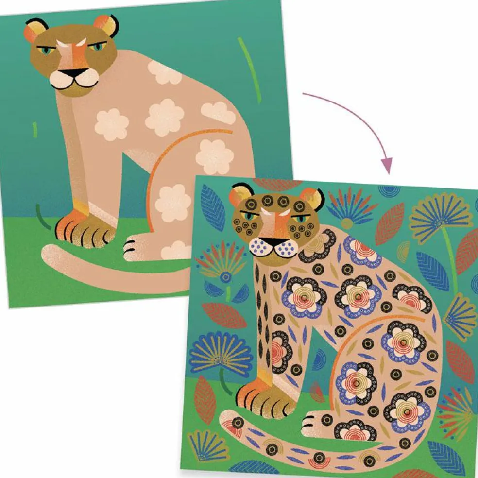 – But du jeu : utiliser les tampons pour agrémenter la robe des animaux sauvages.