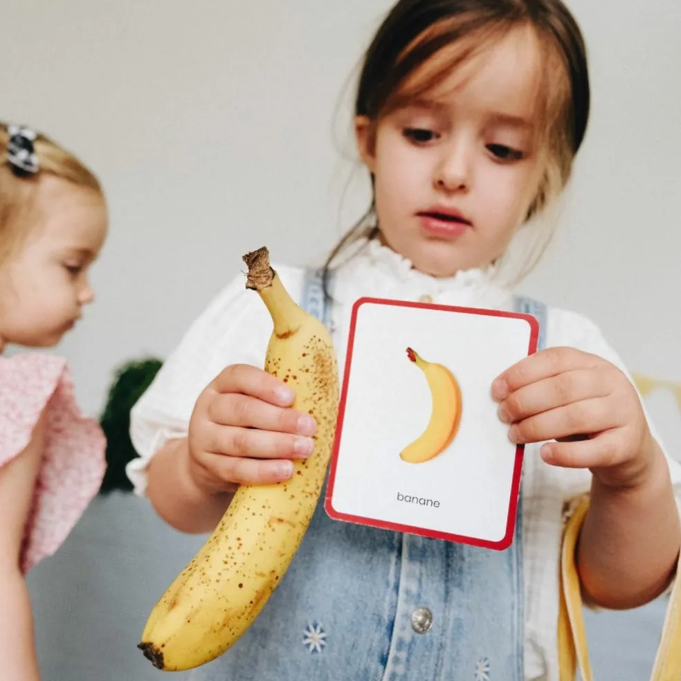 Jeu de langage basé sur la pédagogie Montessori pour découvrir et apprendre à nommer les objets du quotidien. 200 mots sous forme de cartes évolutives, développées avec une éducatrice Montessori certifiée par l’AMI. Dans le coffret : 600 cartes (3 types de cartes), un livret pédagogique contenant 10 activités (mémory, dobble, cherche & trouve, association, chasses aux trésors, jeu de lecture…) et un accès aux vidéos tutorielles des activités Montessori.