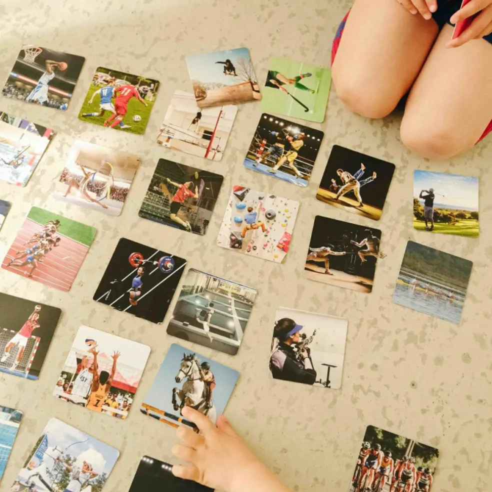 Jeu de langage autour du sport pour découvrir 32 différentes disciplines, apprendre à les nommer et entrer dans la lecture. Jeu développé en collaboration avec une éducatrice Montessori et 32 athlètes sportifs professionnels.