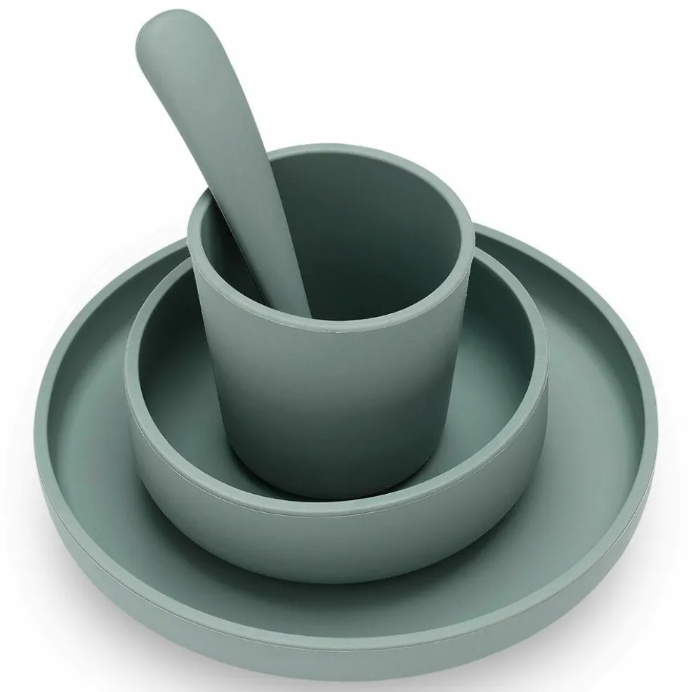 Profitez de moments complices avec votre enfant grâce au coffret repas en silicone Ash green de Jollein.