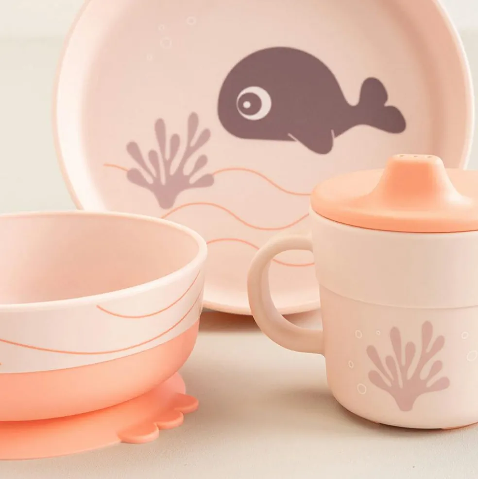 – Comprend 1 assiette, 1 bol et 1 tasse.