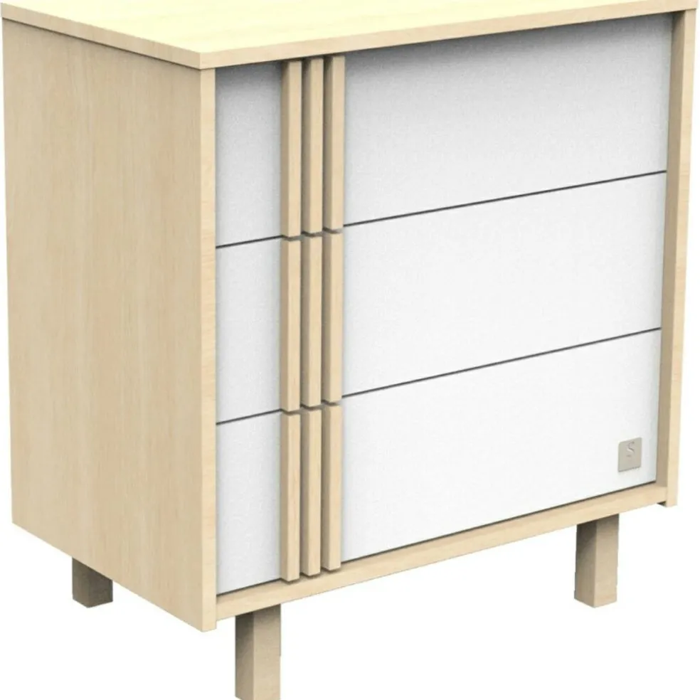 – Faces de tiroirs en panneaux de particules mélaminés décor blanc laquées 1 face blanche, chants décor bois.