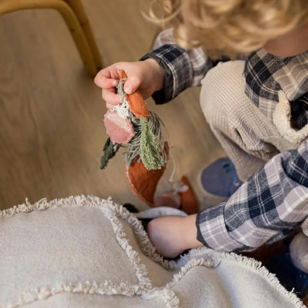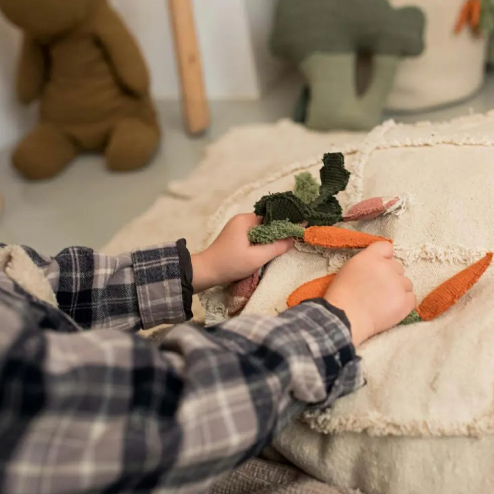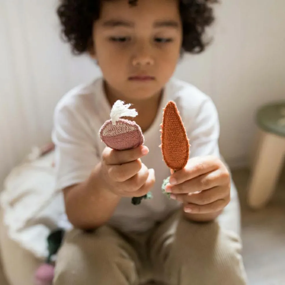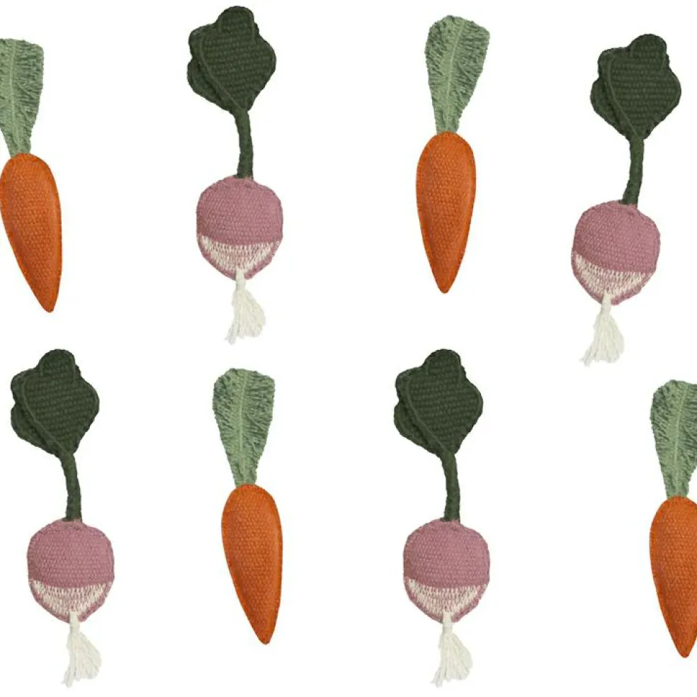 – Poche de chaque côté contenant 4 légumes faits main.