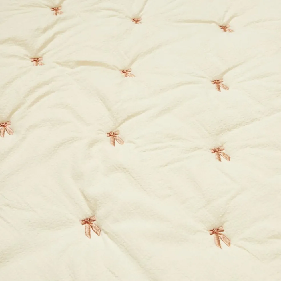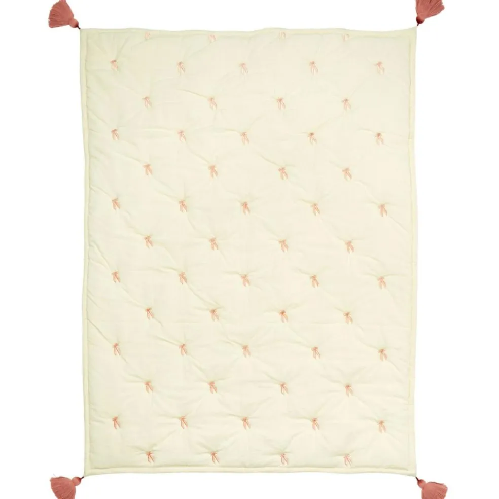 – Couverture délicatement brodée en crêpe de coton fin avec des pompons élégants et de doux motifs Cam Cam.