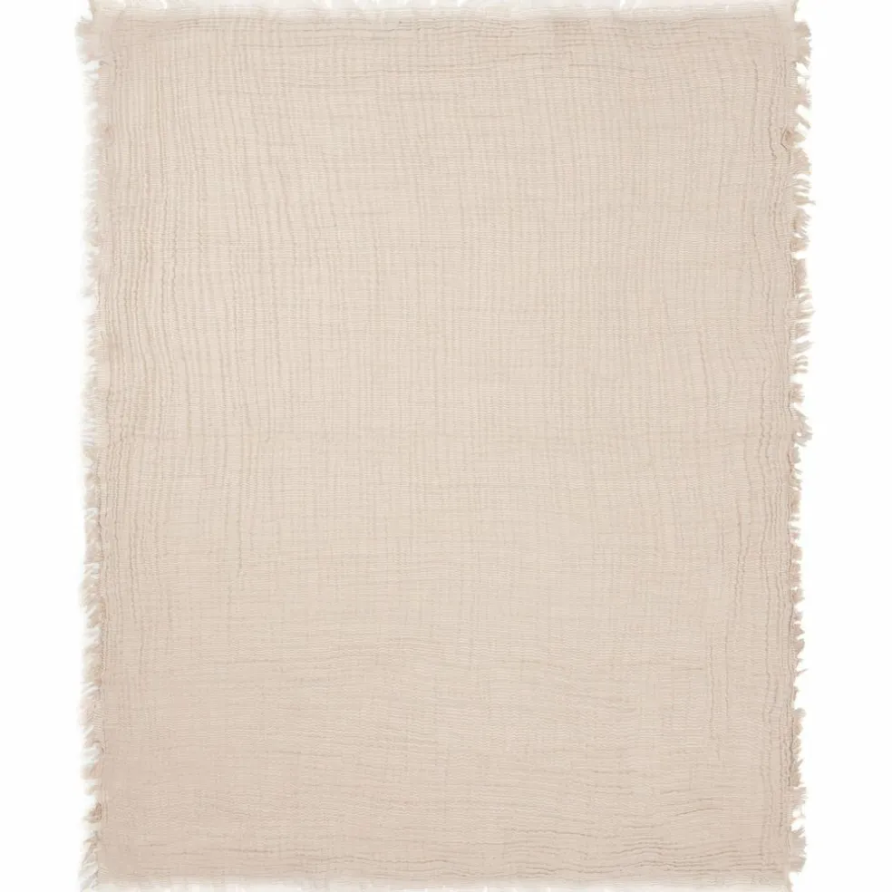 Couverture en gaze de coton Fringe Stripe Biscuit (75 x 100 cm)