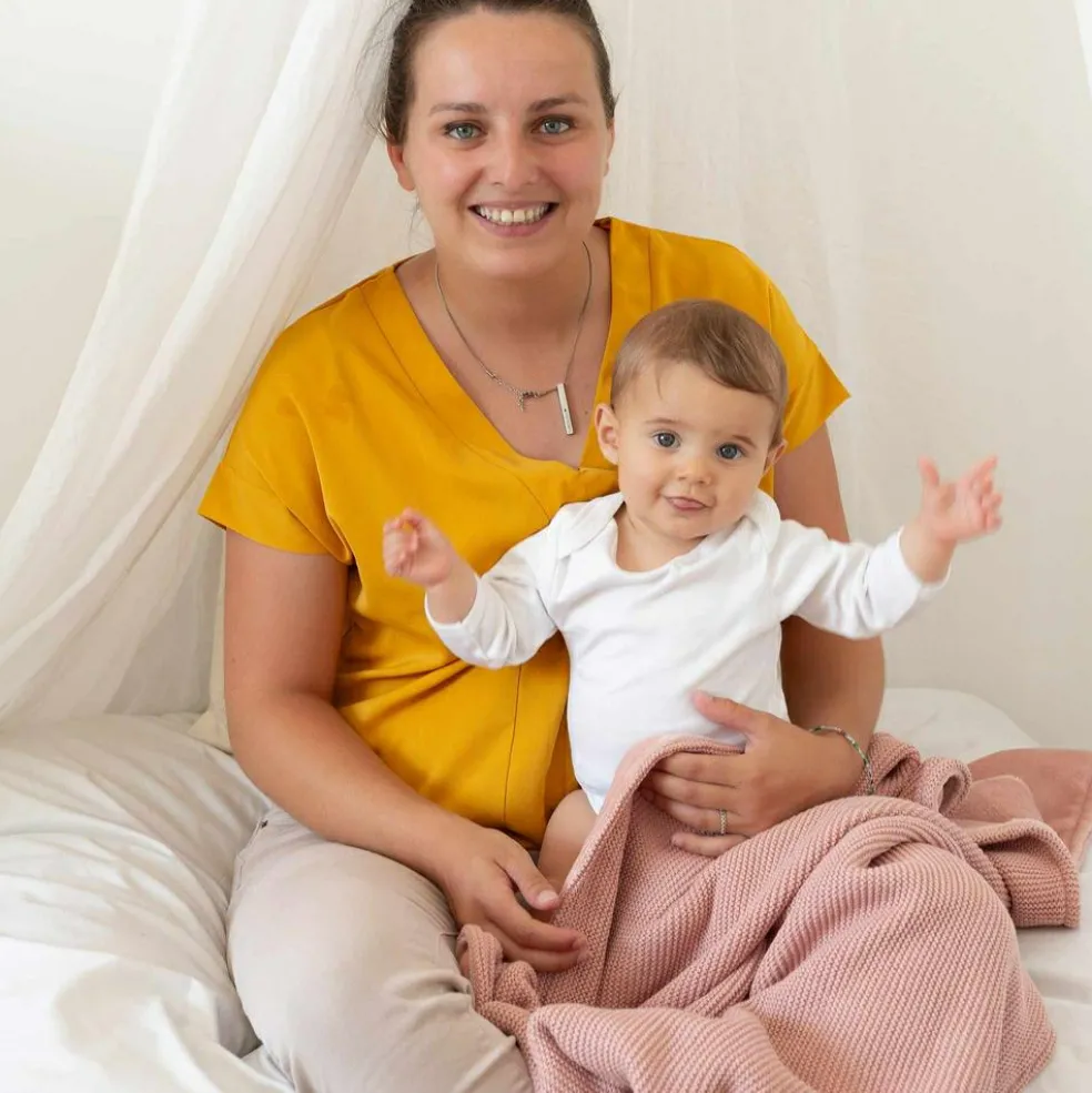 Couverture en tricot et flanelle Vieux rose (75 x 100 cm)
