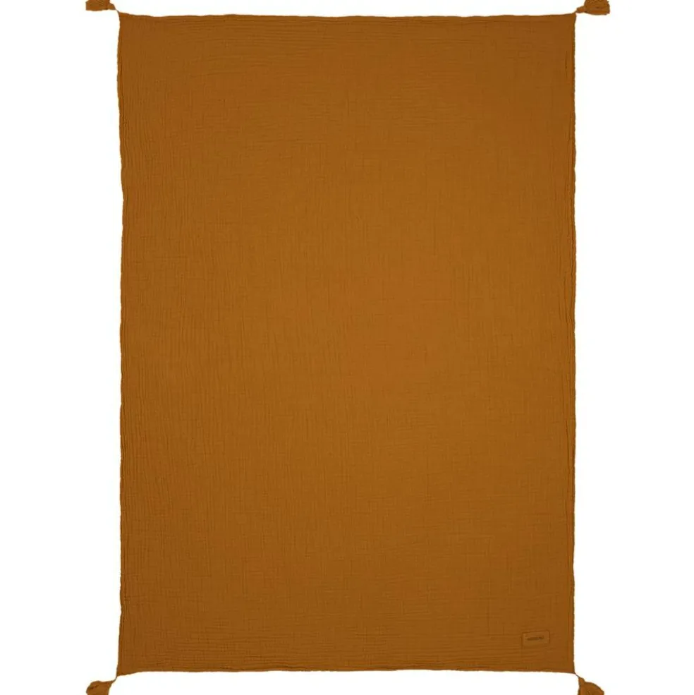 – Incontournable, la couverture en double gaze de coton bio lavée est légère comme l’air et dotée de pompons qui lui donnent son petit plus stylé.
