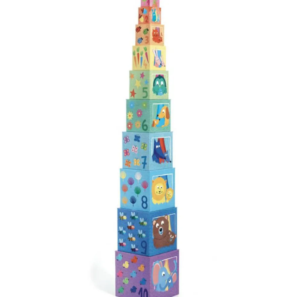 Composé de 10 cubes en carton résistant, illustrés d’animaux, de chiffres, de couleurs et d’objets du quotidien, ce jouet permet à votre enfant de construire, empiler, renverser et recommencer… tout en développant sa motricité et son sens de l’observation.