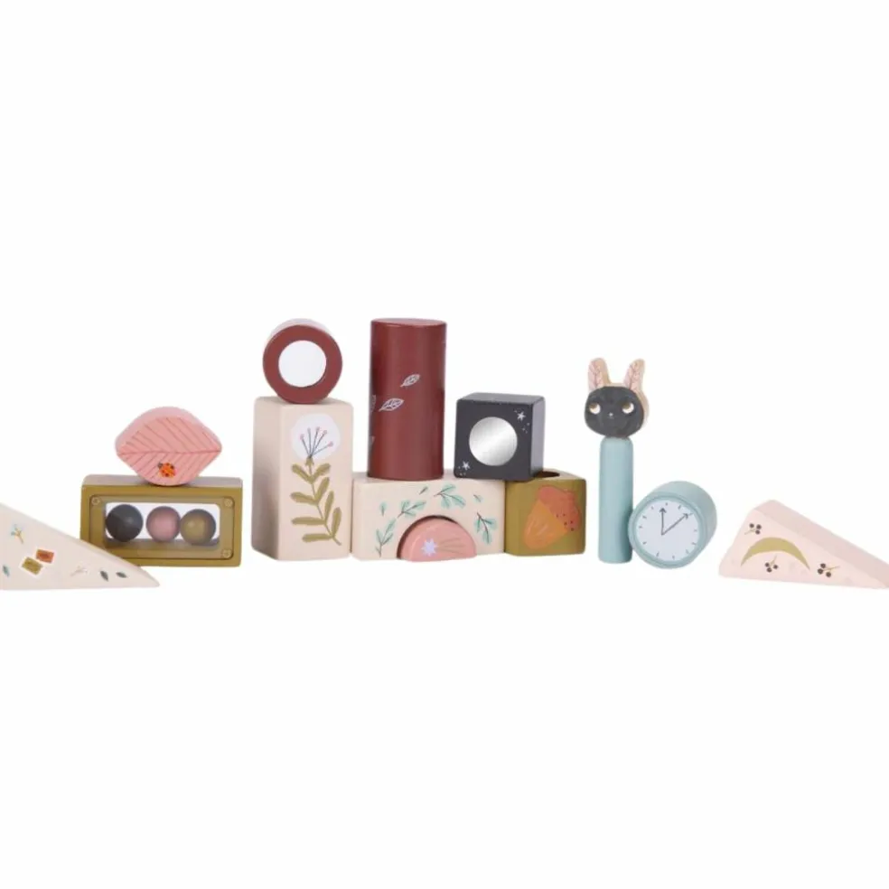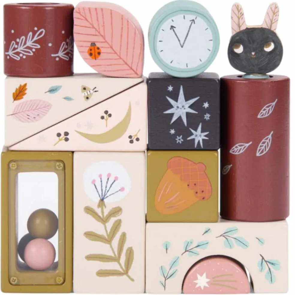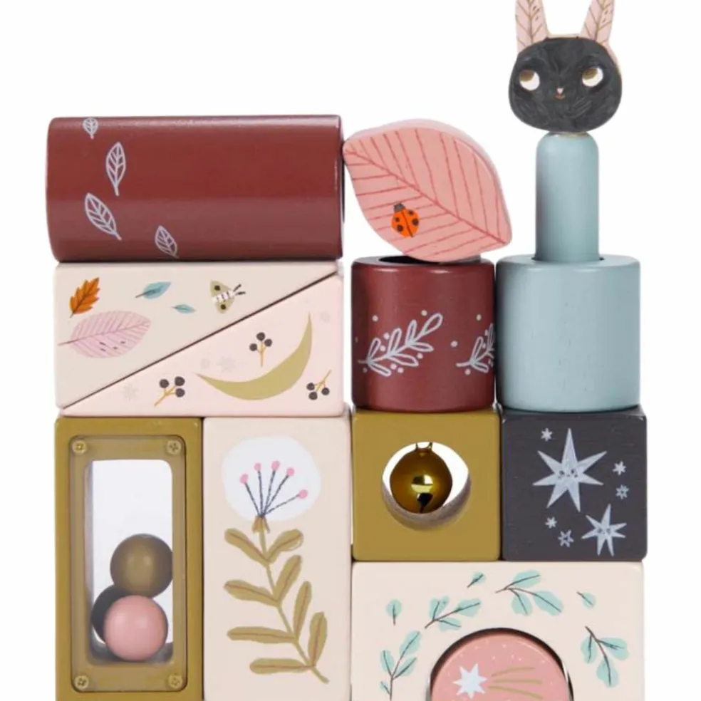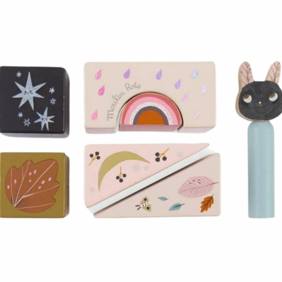 – Jeu d’activités en bois illustré de la collection Après la pluie, comprenant 13 pièces de formes différentes avec petit miroir, grelot, pop-up et petites billes.