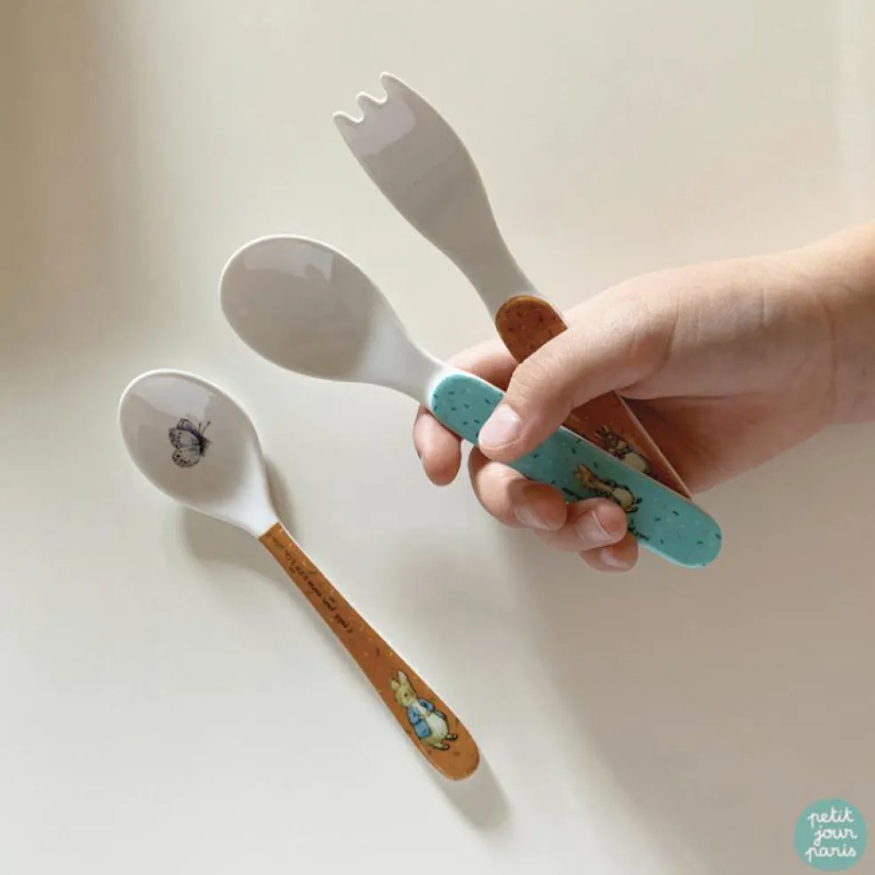 Bon appétit ! Choisissez la cuillère Pierre Lapin ocre de Petit Jour Paris pour des repas plein de joie.