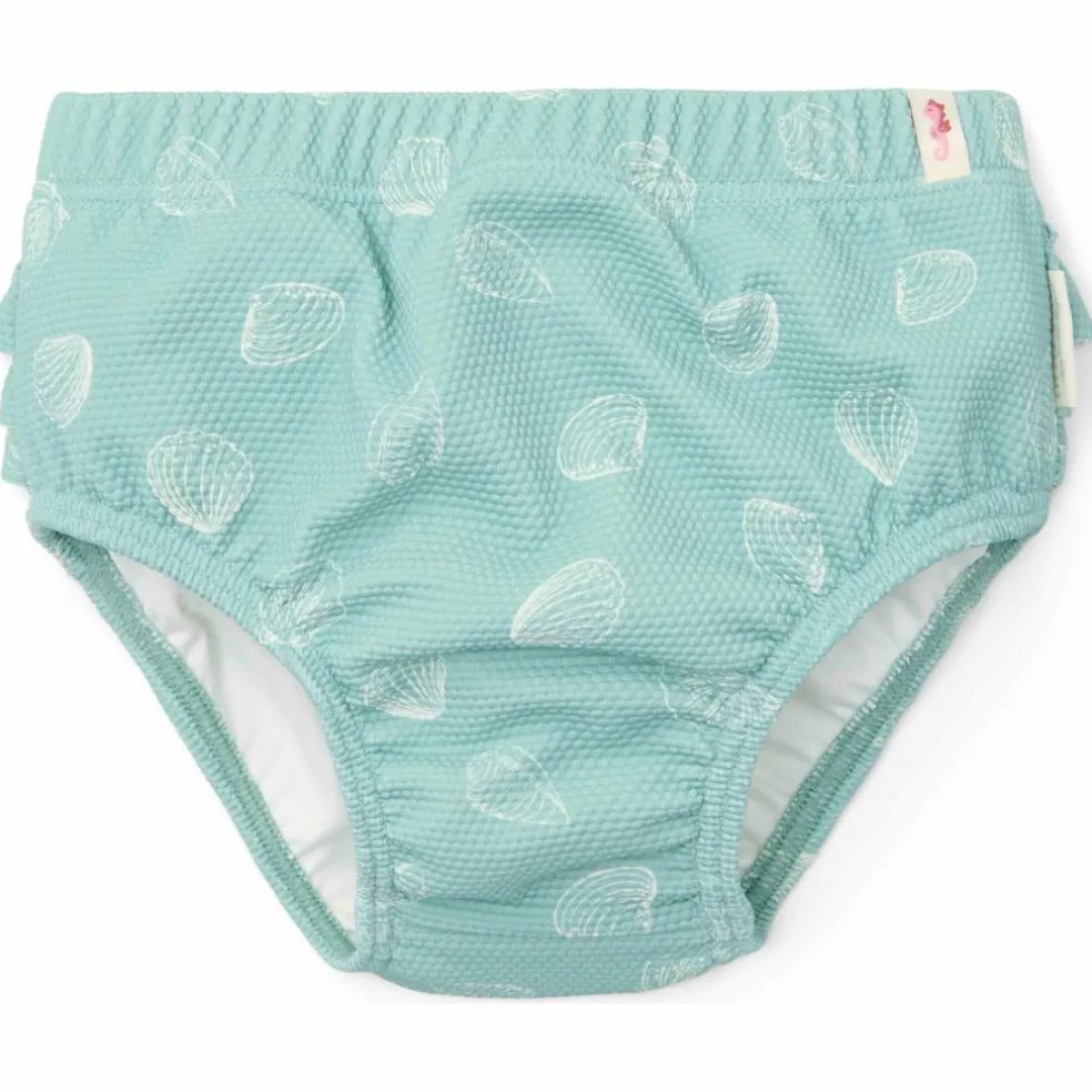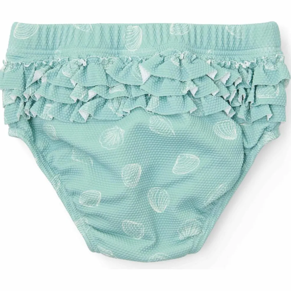 – Avec son design Ocean Treasures vert menthe, accompagné de coquillages blancs, cette couche de bain s’associe parfaitement avec le tee shirt de natation à manches courtes pour créer un ensemble deux pièces très élégant.