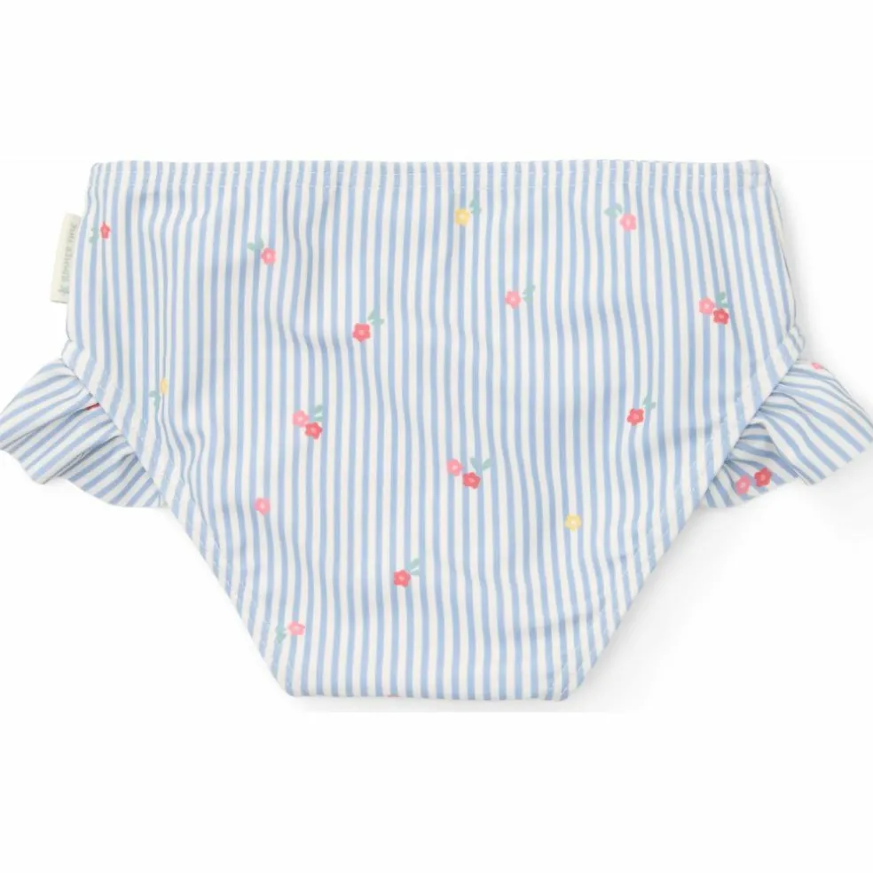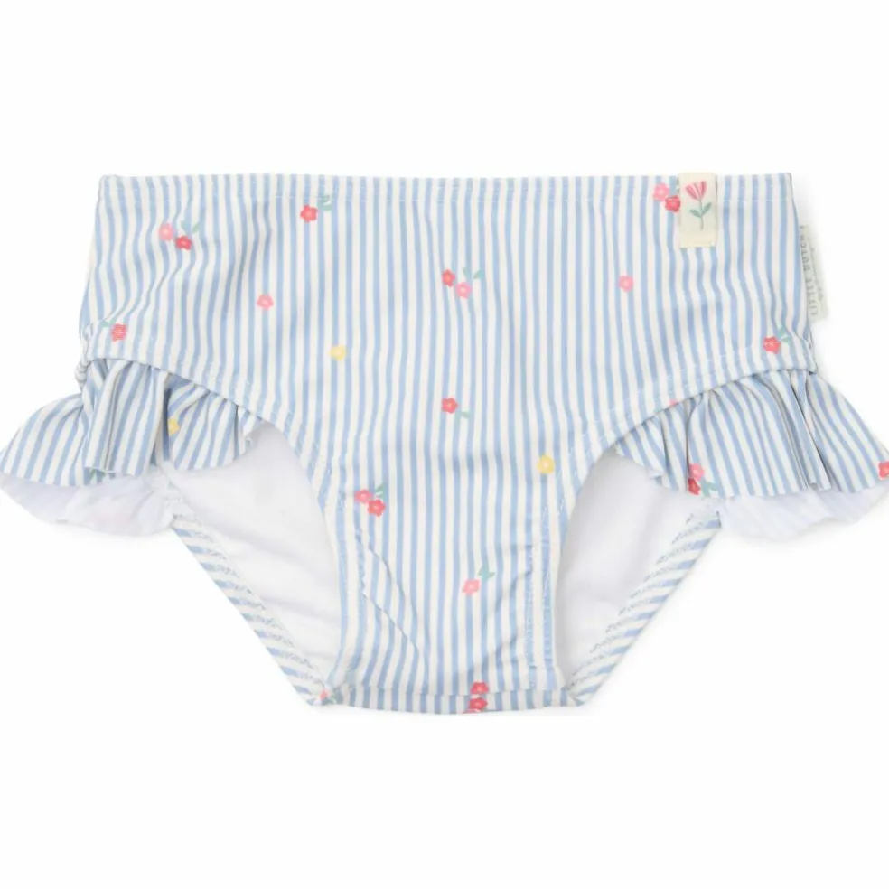 – Le bas de culotte de bain Sunny Flowers, avec son délicieux mélange de fines rayures bleues et blanches, ornées de délicates fleurs roses, apportera de la joie aux journées au bord de l’eau.