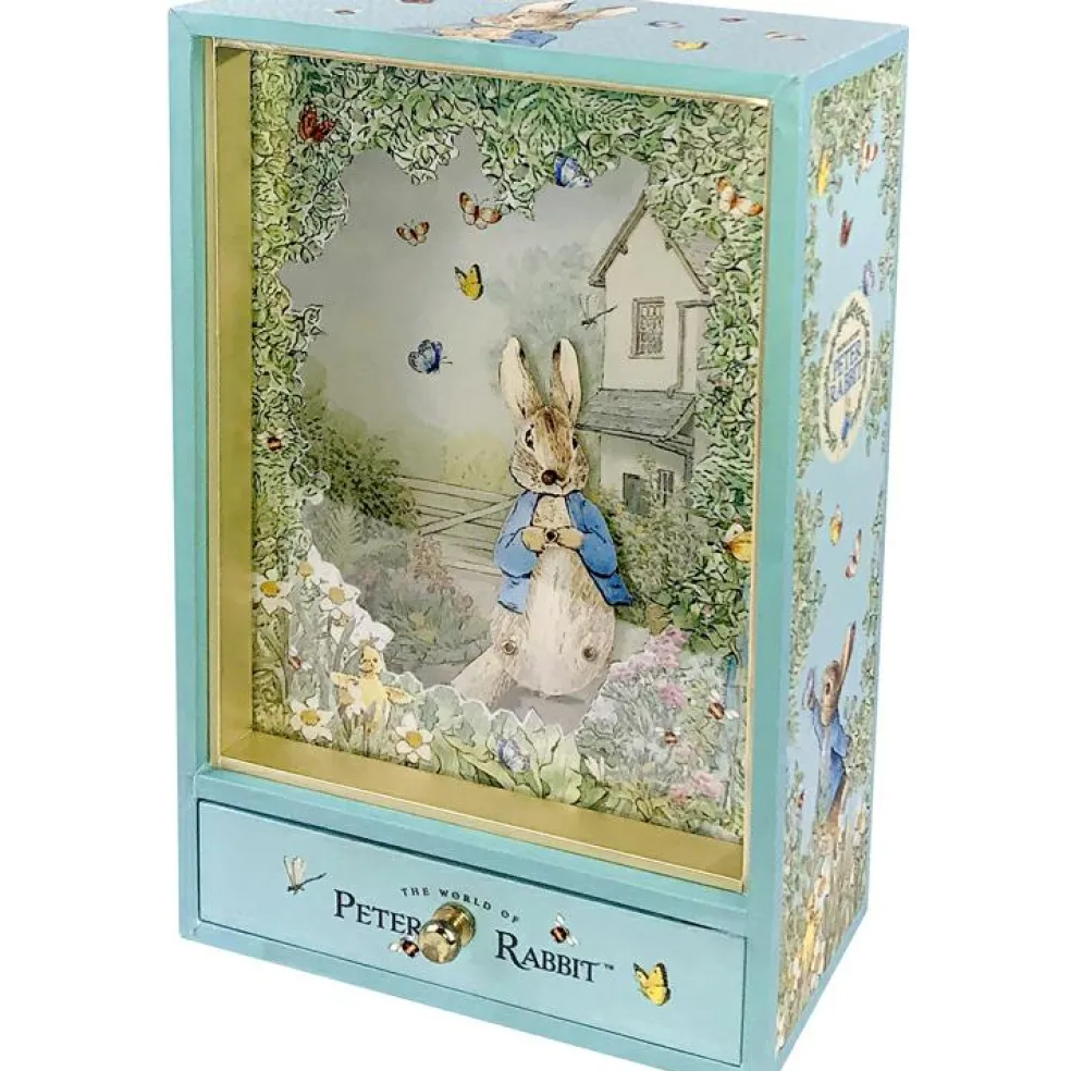 – Tourner la clé située à l’arrière de la boîte puis ouvrir le tiroir, les personages s’animeront alors au son de la mélodie.