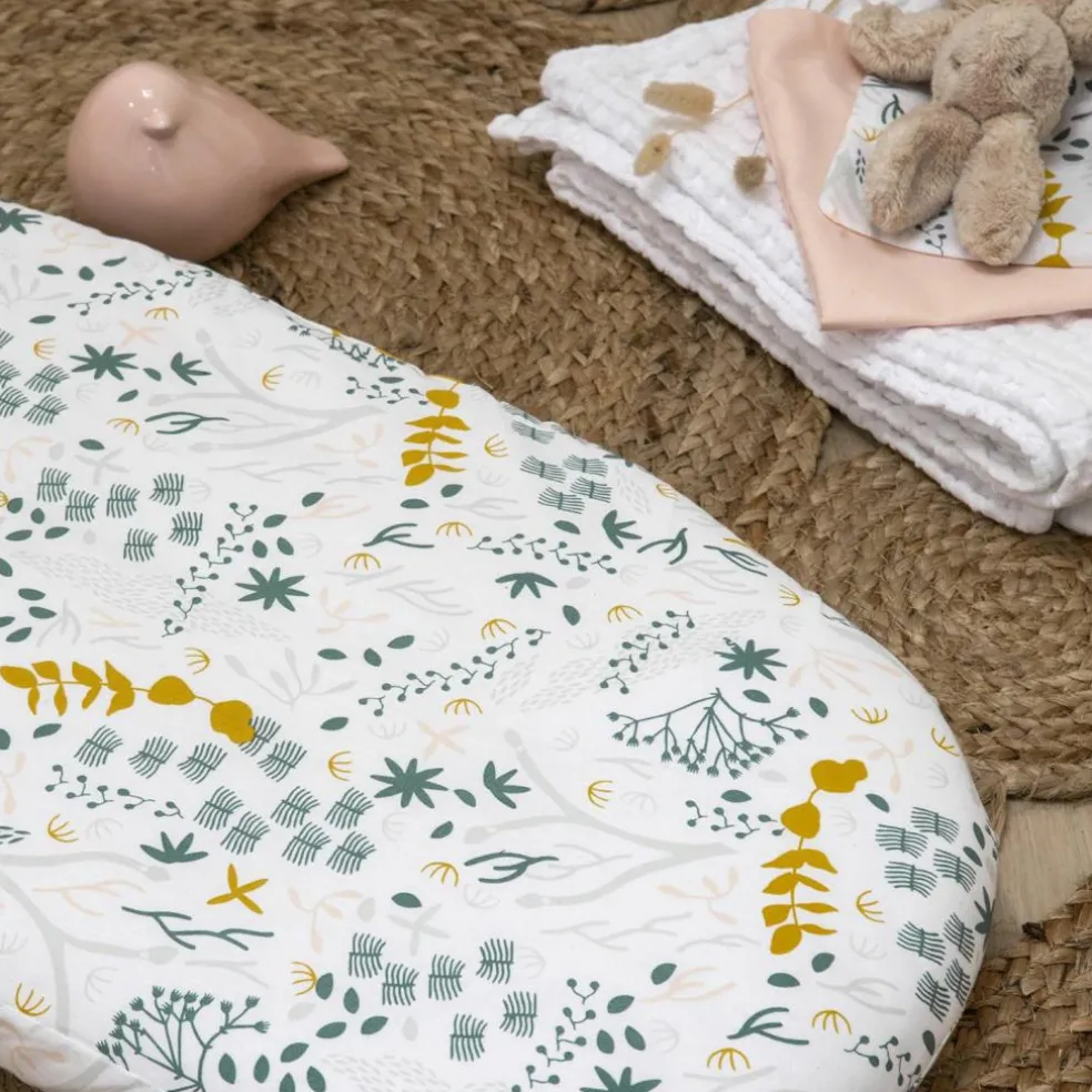 Illuminez les premières balades de bébé avec le Drap housse en coton bio Yukari pour landau – Kadolis (72 x 33 cm).