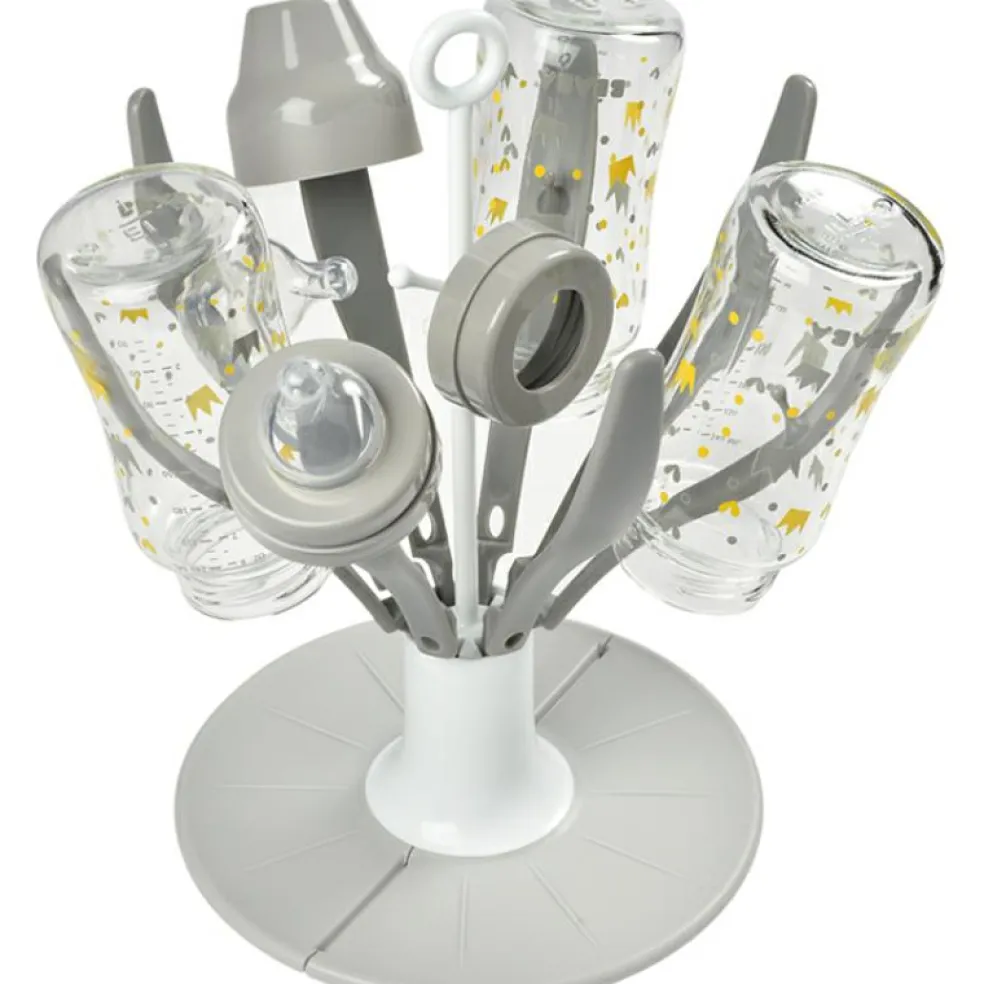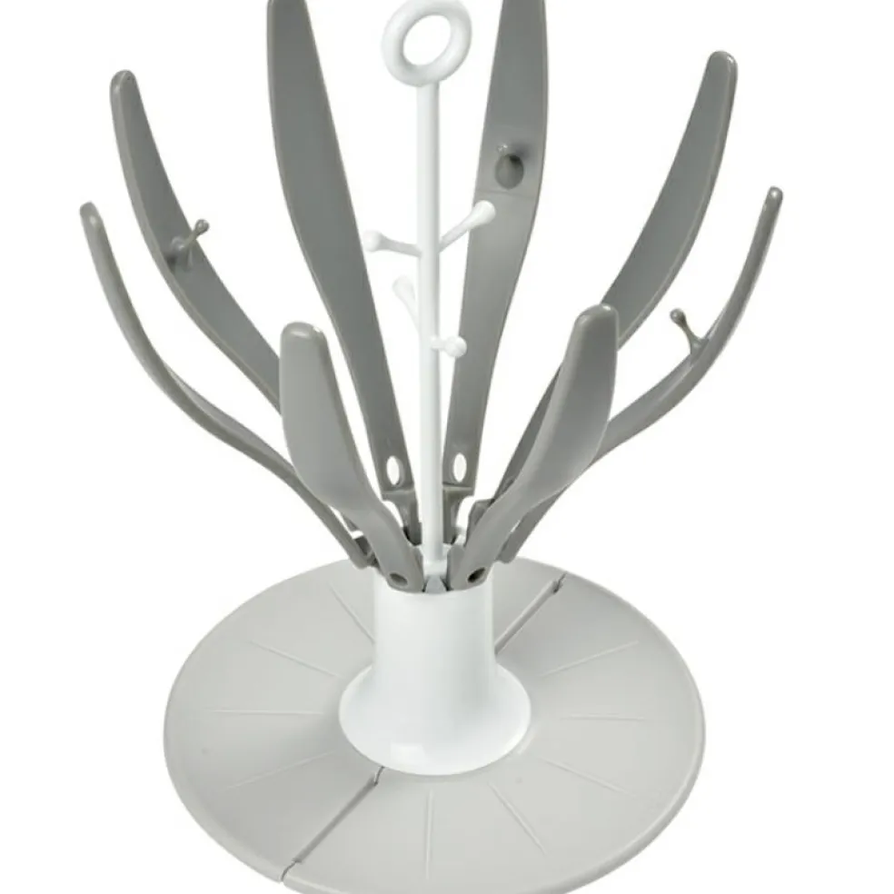 L’égoutte biberons pliable fleur gris de la marque Béaba permet de faire sécher les biberons et accessoires (tétines, bagues, capuchons…) de façon hygiénique en gardant le plan de travail au sec. Il se plie et se range facilement grâce à son système de pliage très intuitif. Le socle pliable est adapté aux petits espaces et est pratique pour les déplacements.