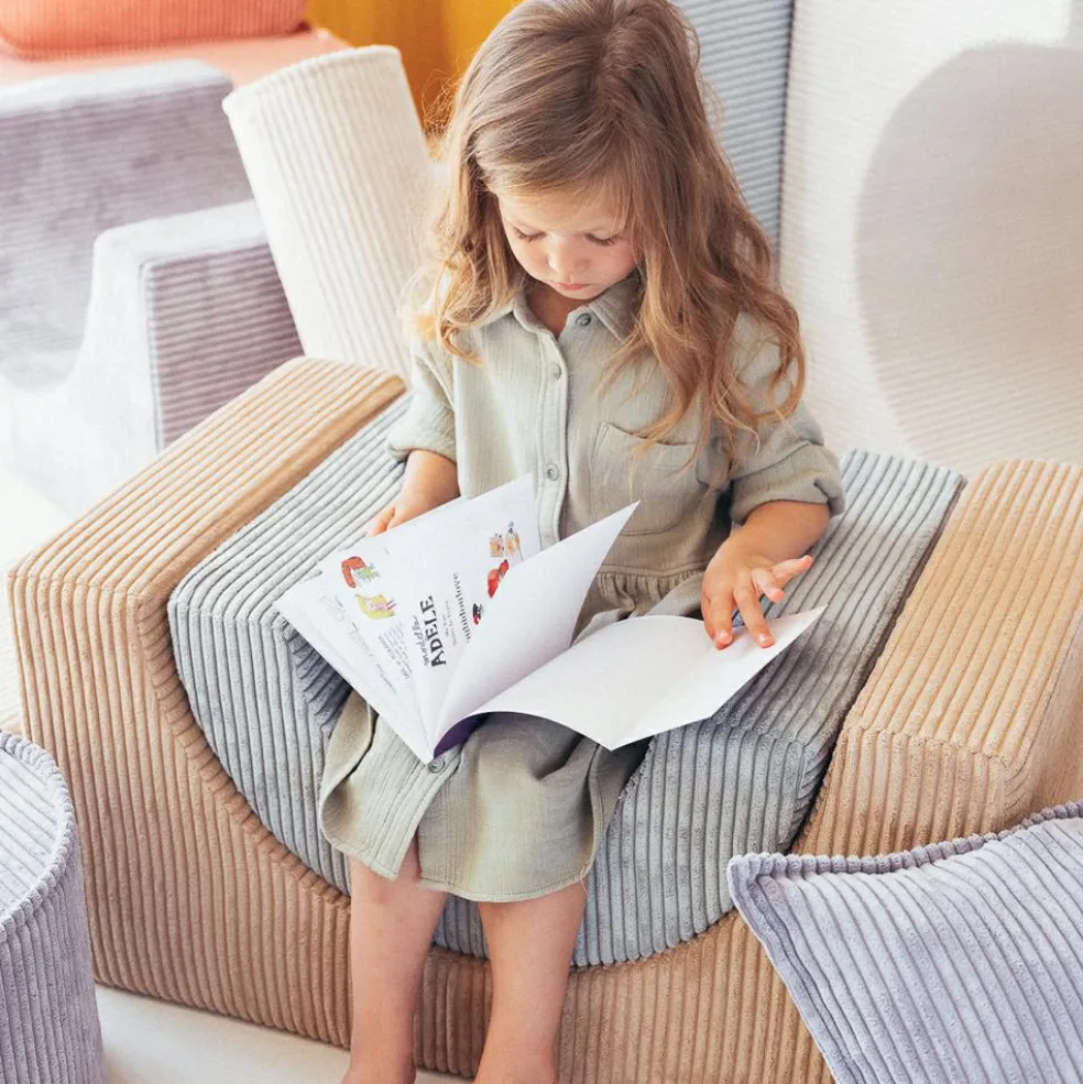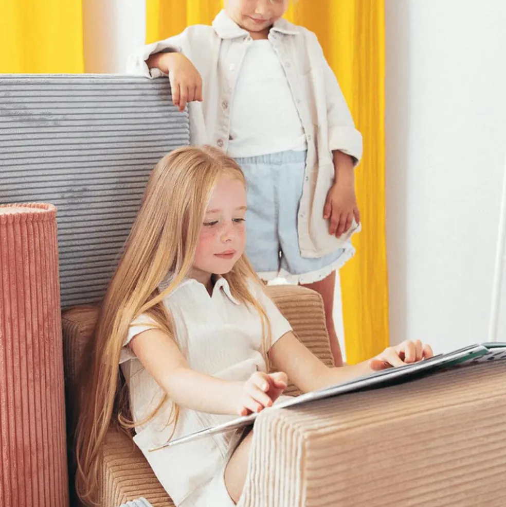 – Transformable en chaise confortable, table ludique, pouf, cabane…