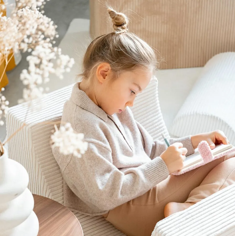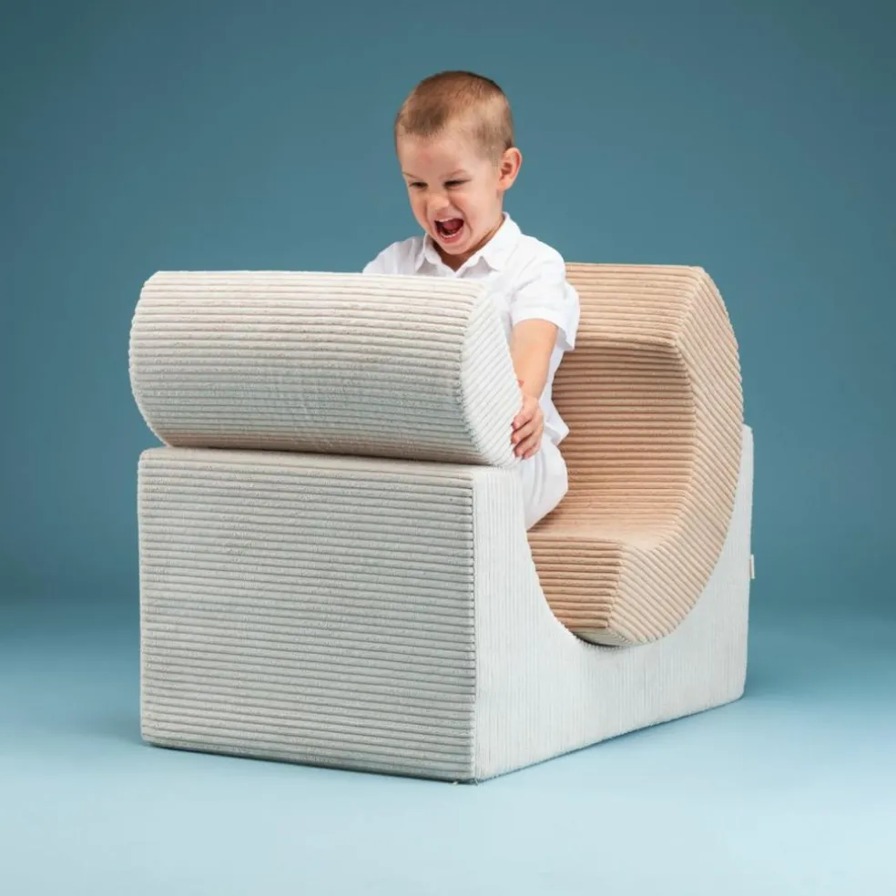 – Transformable en chaise confortable, table ludique, pouf, cabane…