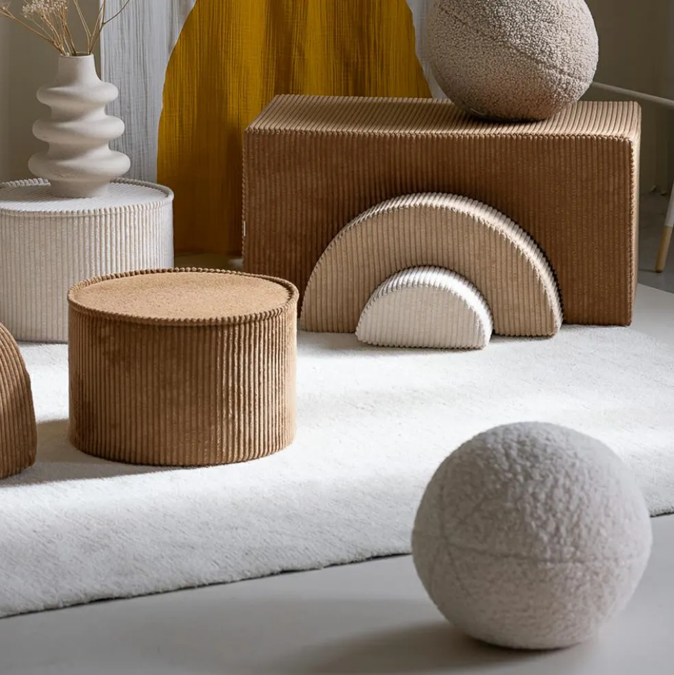 – Enveloppe extérieure : velours côtelé large fabriqué à partir de bouteilles recyclées.
