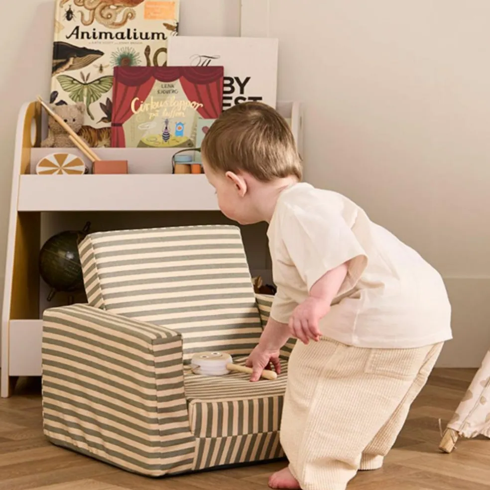 Un coin cocooning pour les enfants avec le Fauteuil pliable Rayé de Kid’s Concept !